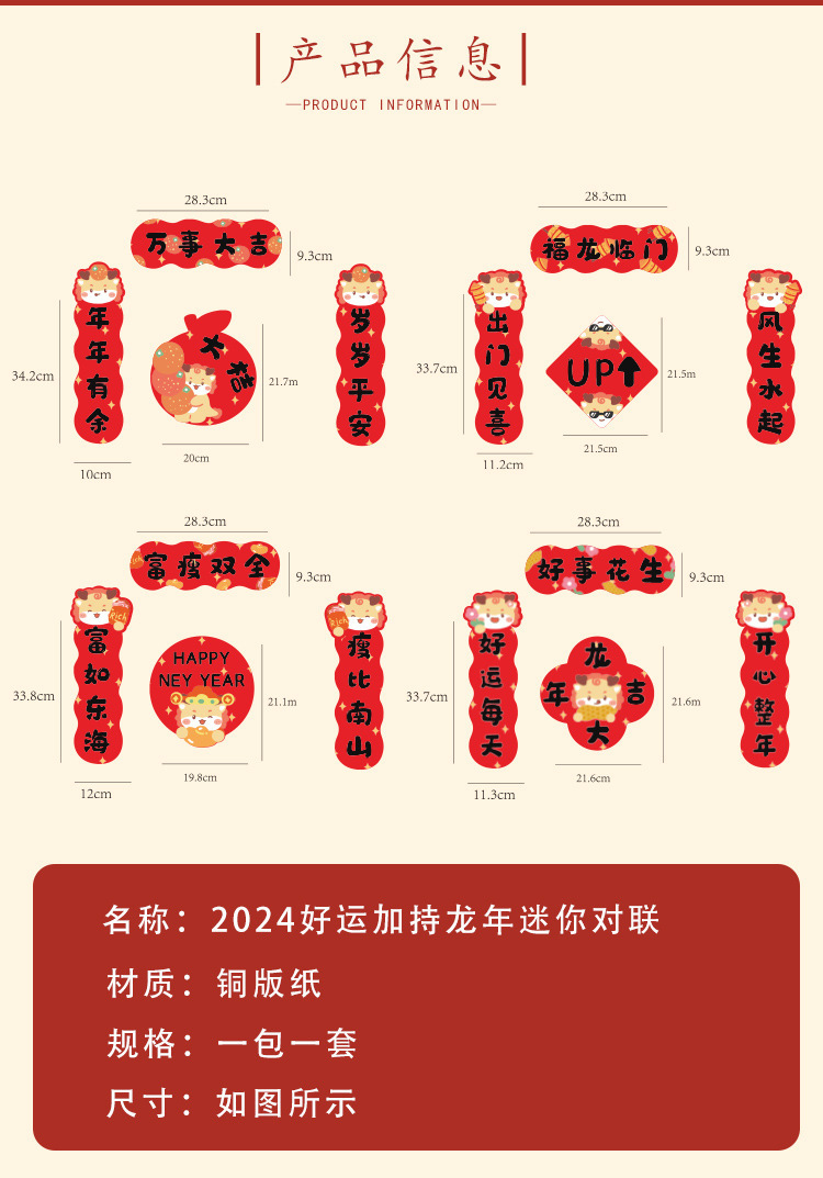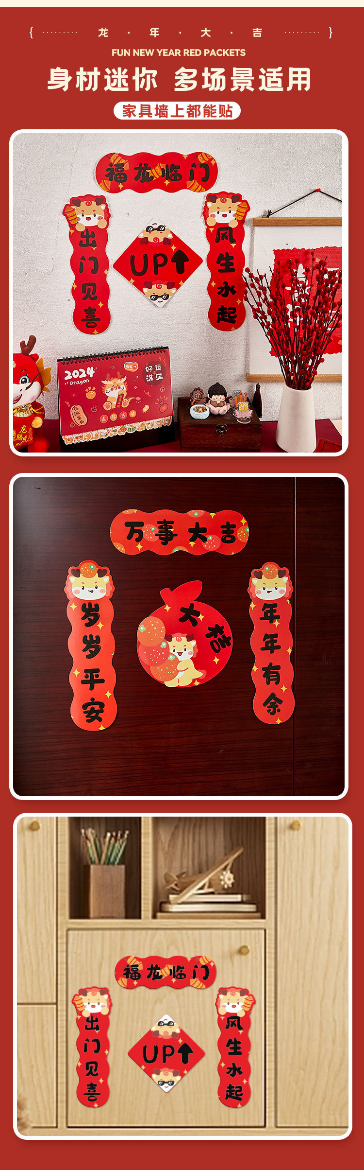 「9.9元包邮!数款可选」新年原创对联贴 春联迷你喜乐门装饰搬家新款春节2024个性喜庆创意家居饰品