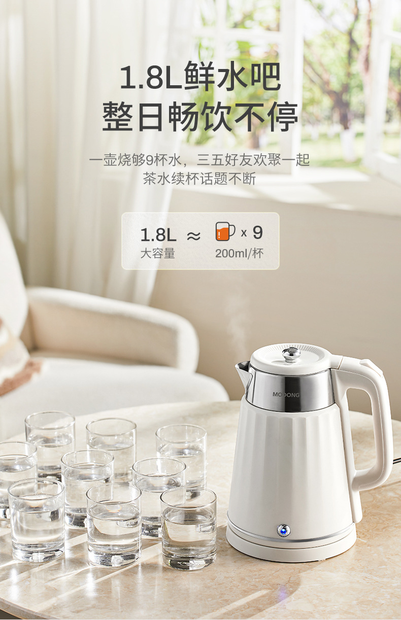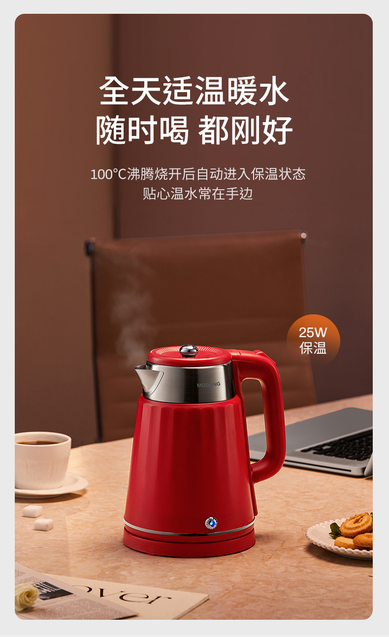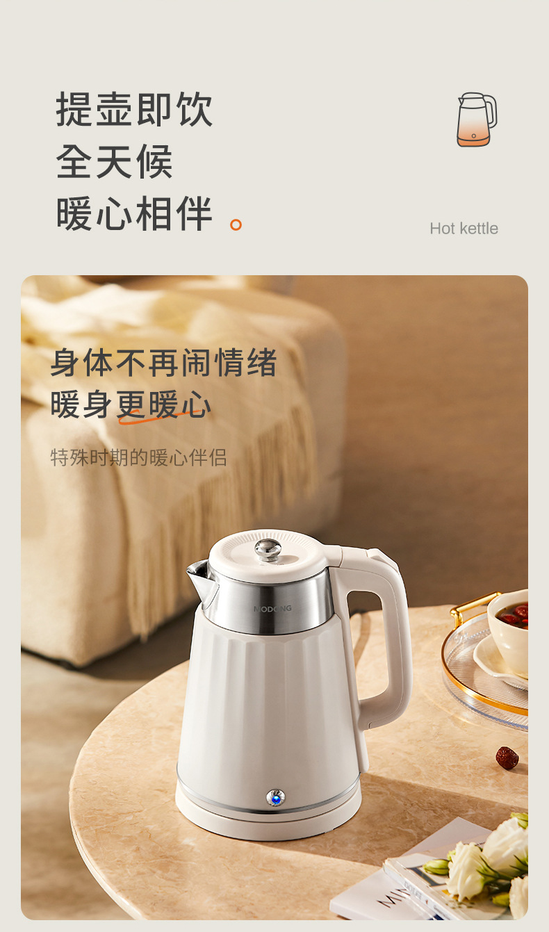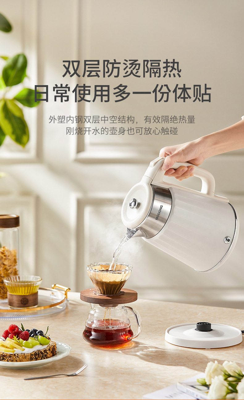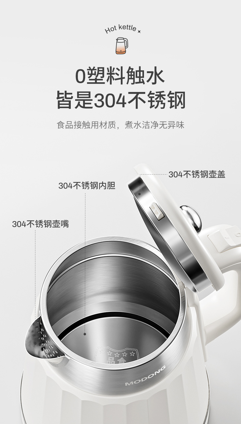 MODONG摩动烧水壶 新款家用电烧水壶 304不锈钢全覆盖,双层防烫隔热,摩动电热水壶让每一杯热水都安心又暖心❤️