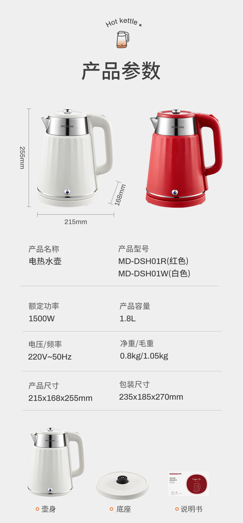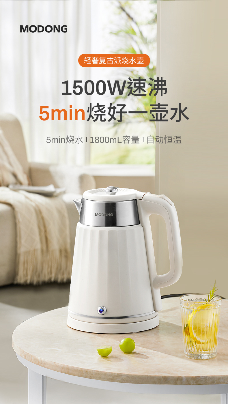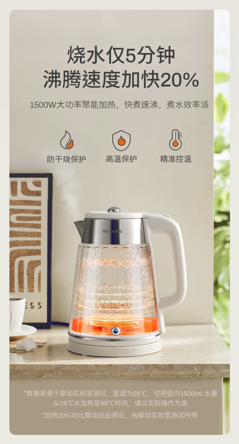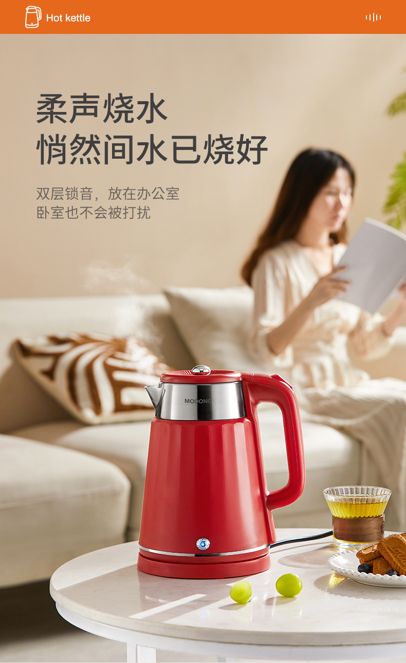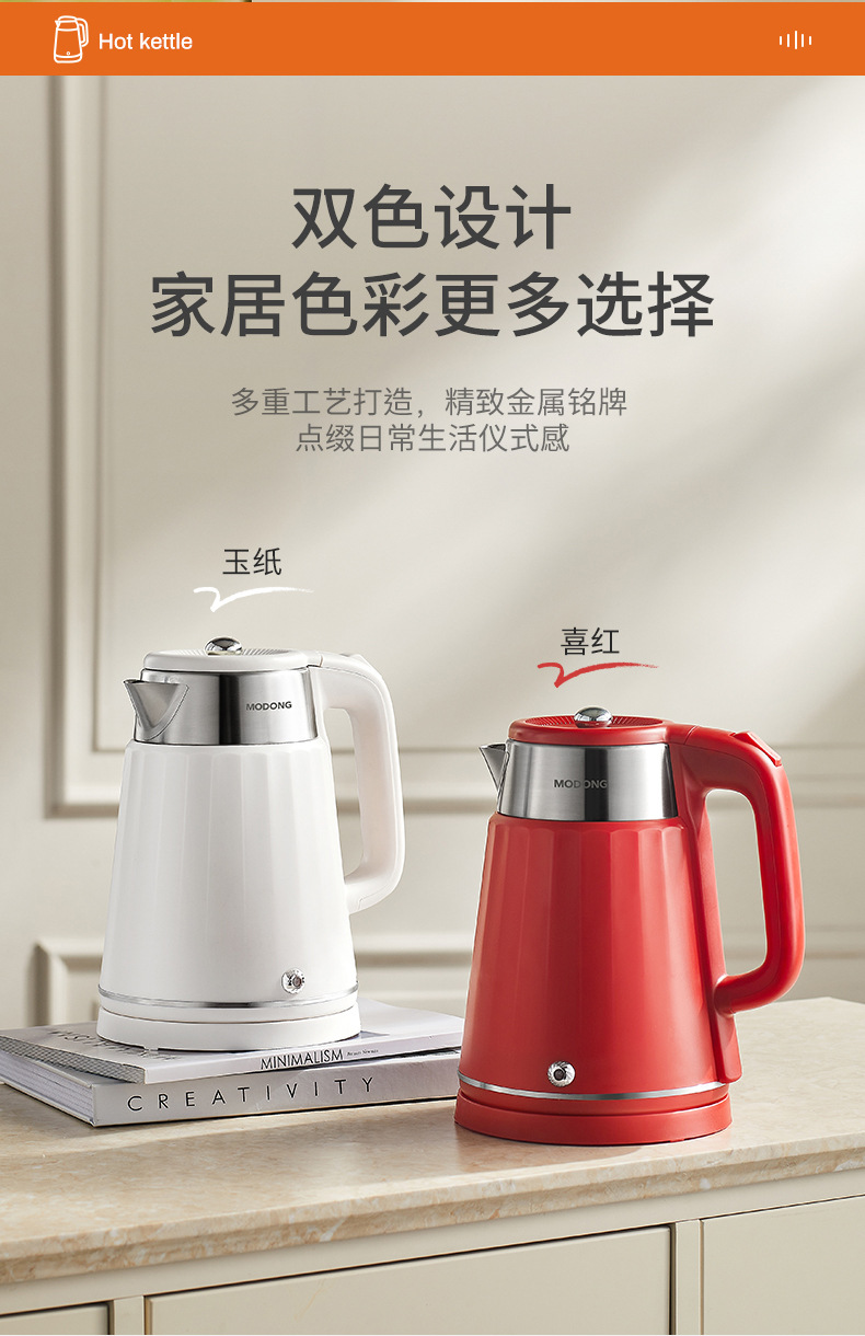 MODONG摩动烧水壶 新款家用电烧水壶 304不锈钢全覆盖,双层防烫隔热,摩动电热水壶让每一杯热水都安心又暖心❤️