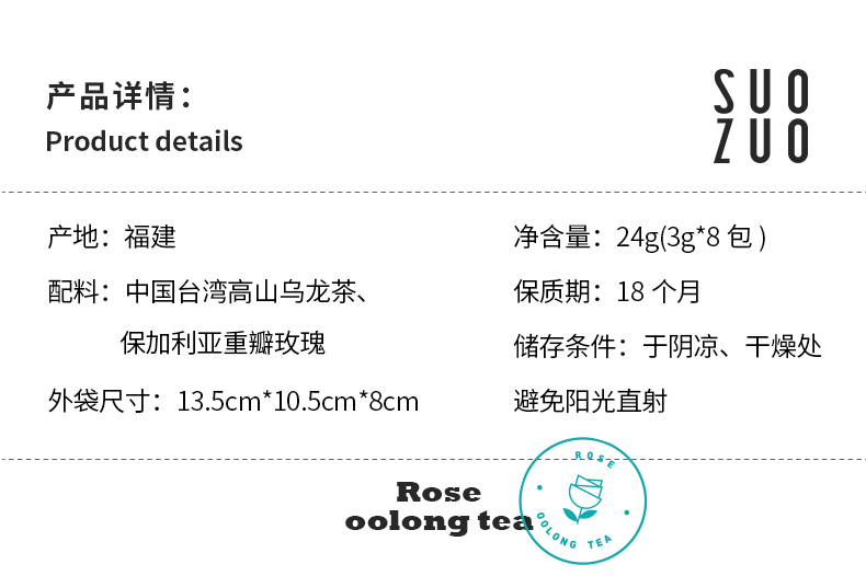 SUOZUO所作玫瑰乌龙茶小袋装三角包袋泡组合花草茶女生美容茶冷萃