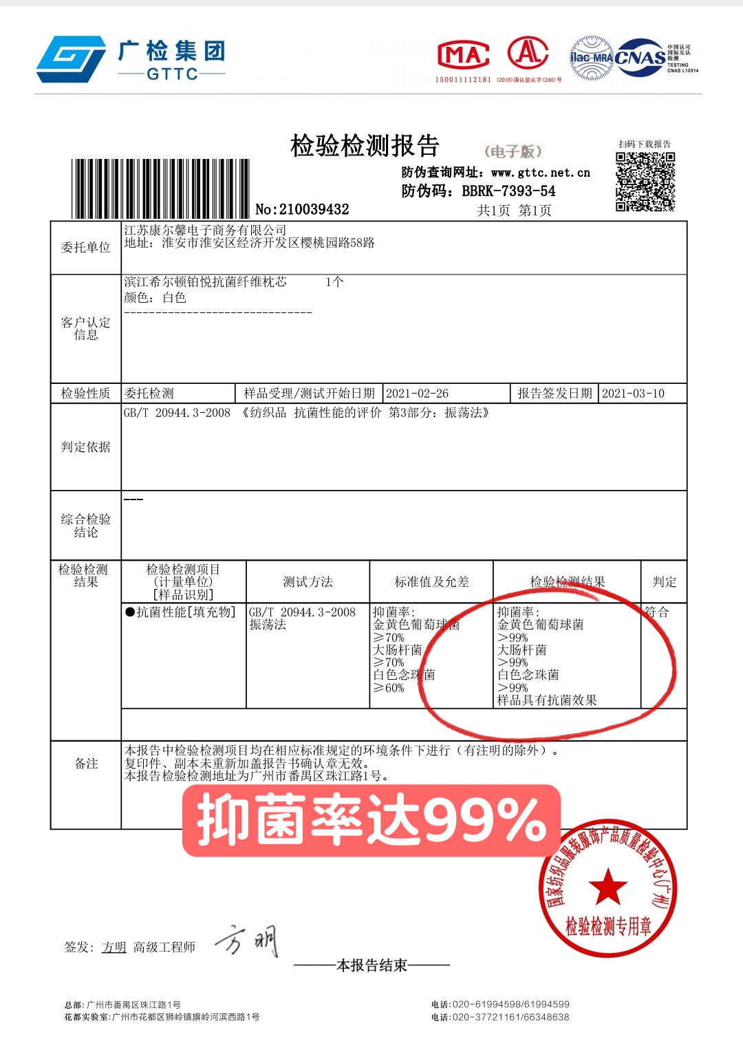 品牌经过多次机清洁测试,枕芯高度和蓬松度均保持不变