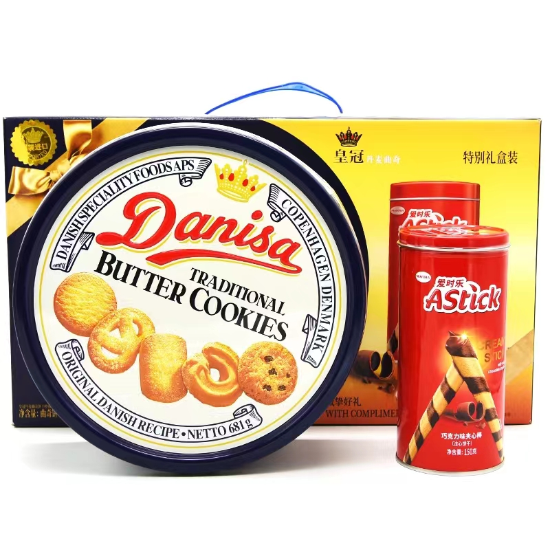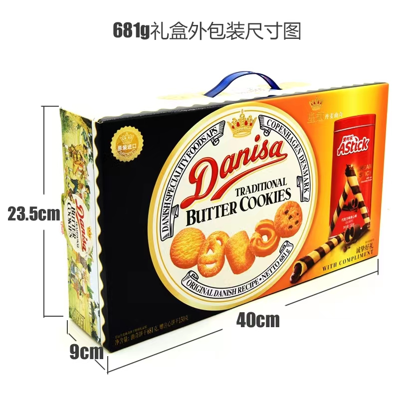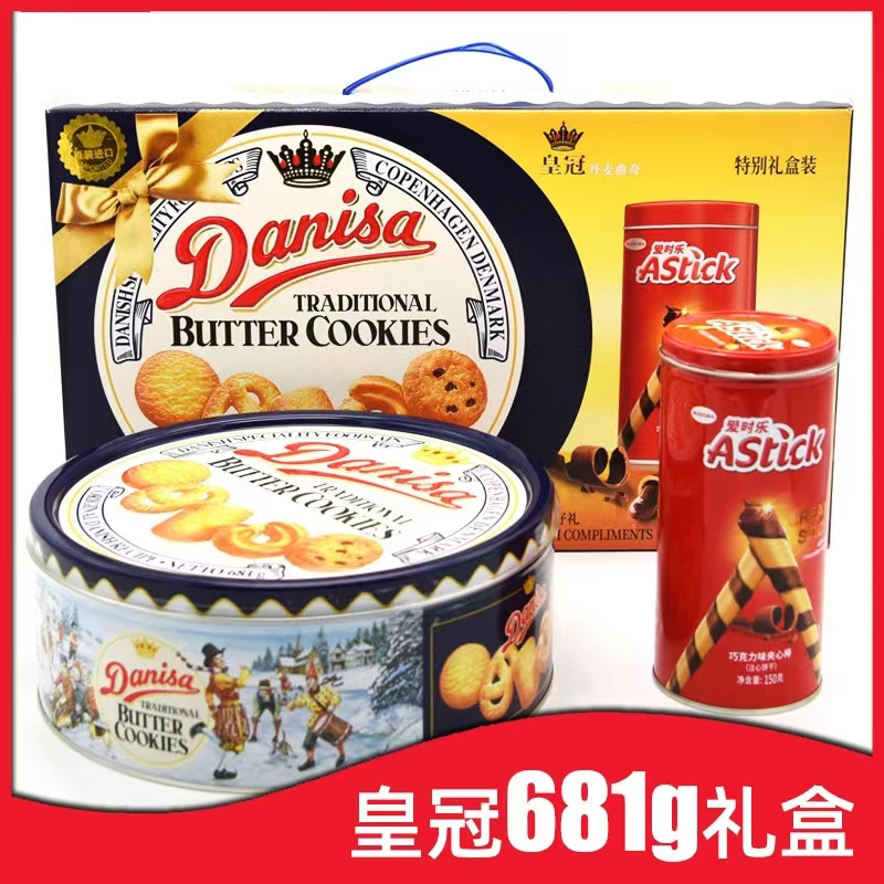 皇冠 丹麦曲奇礼盒681g(赠注心威化饼干150g)