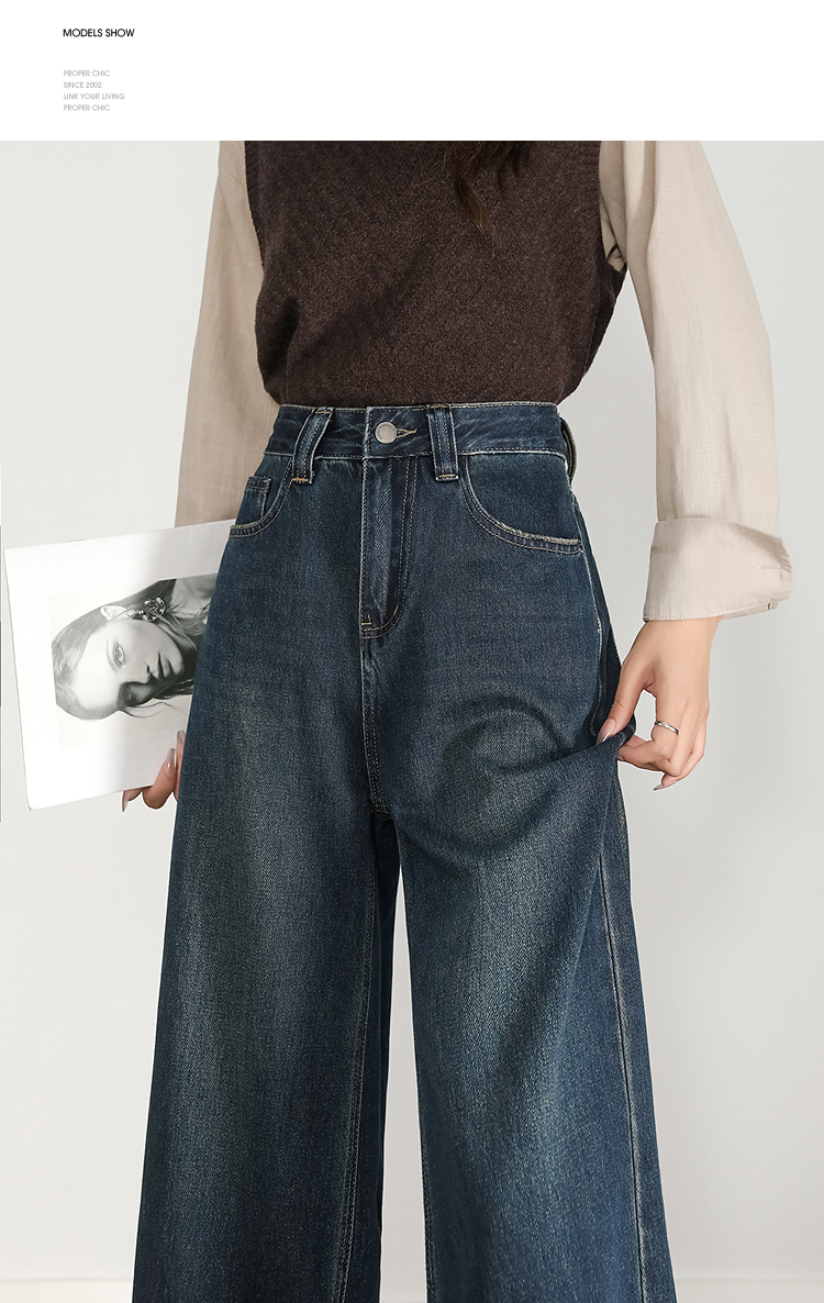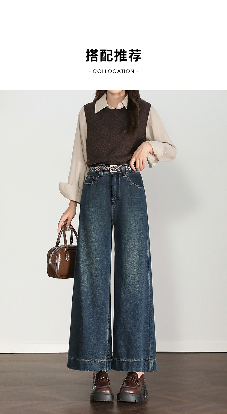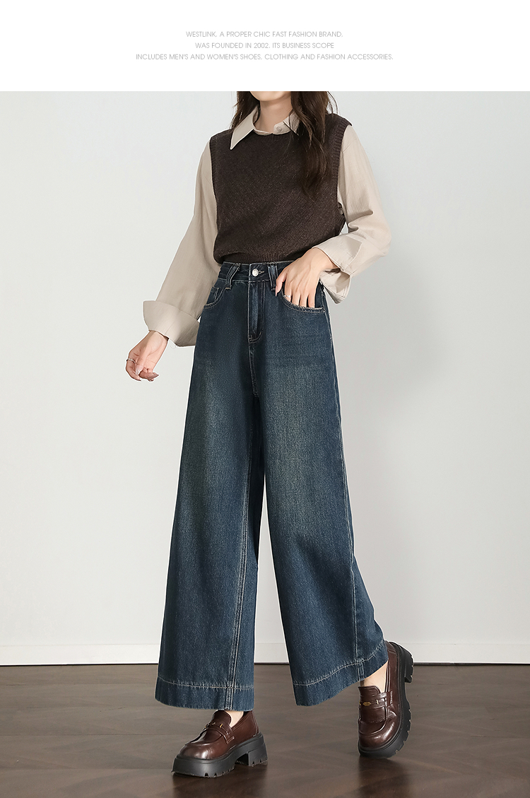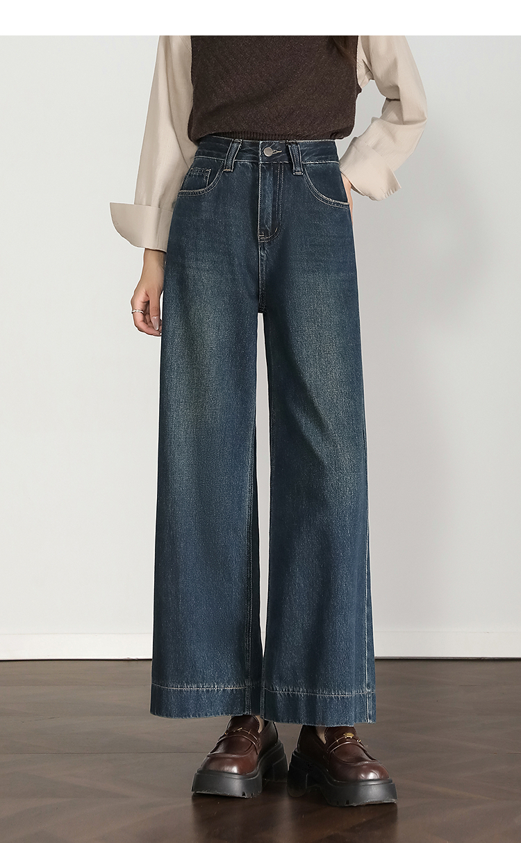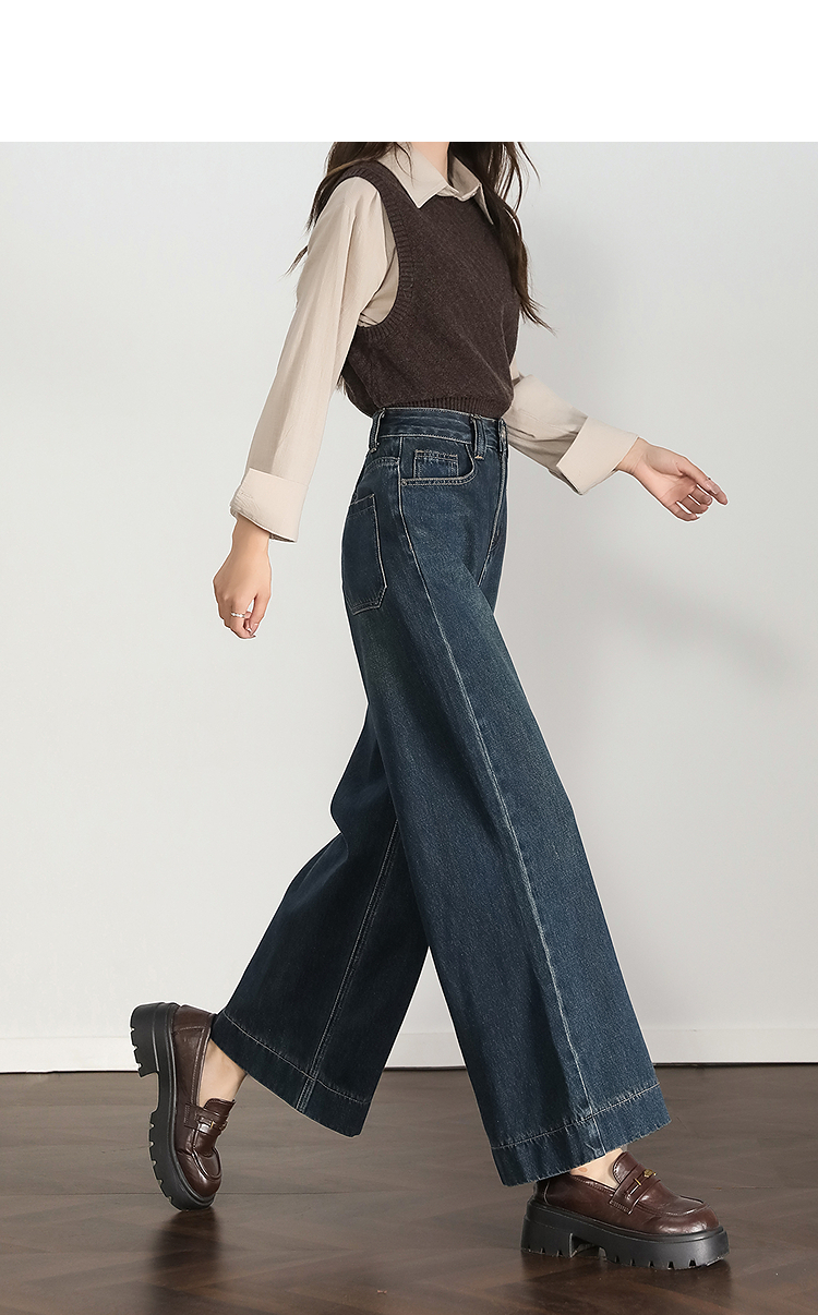 西遇复古水洗牛仔裤女秋季新款高腰宽松显瘦窄版直筒阔腿裤H0055181