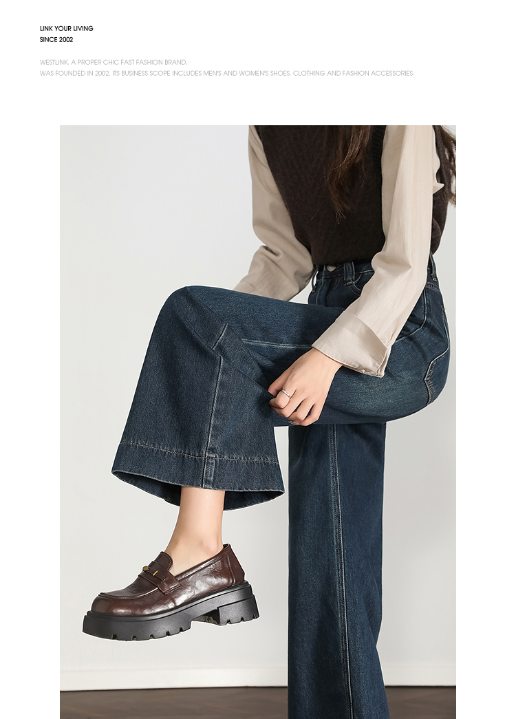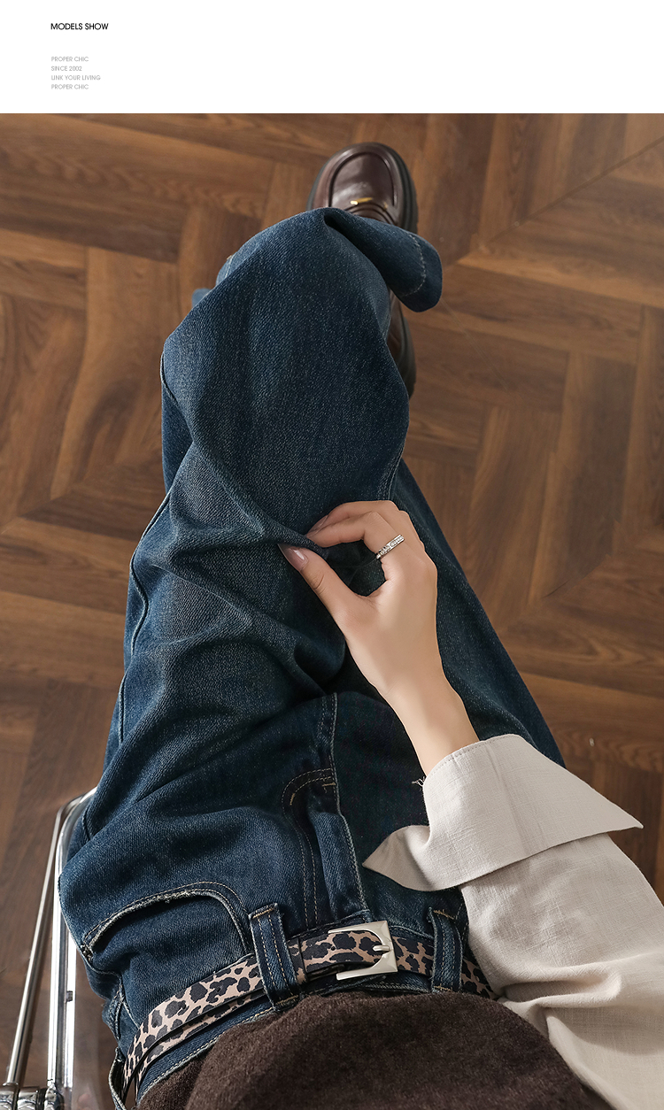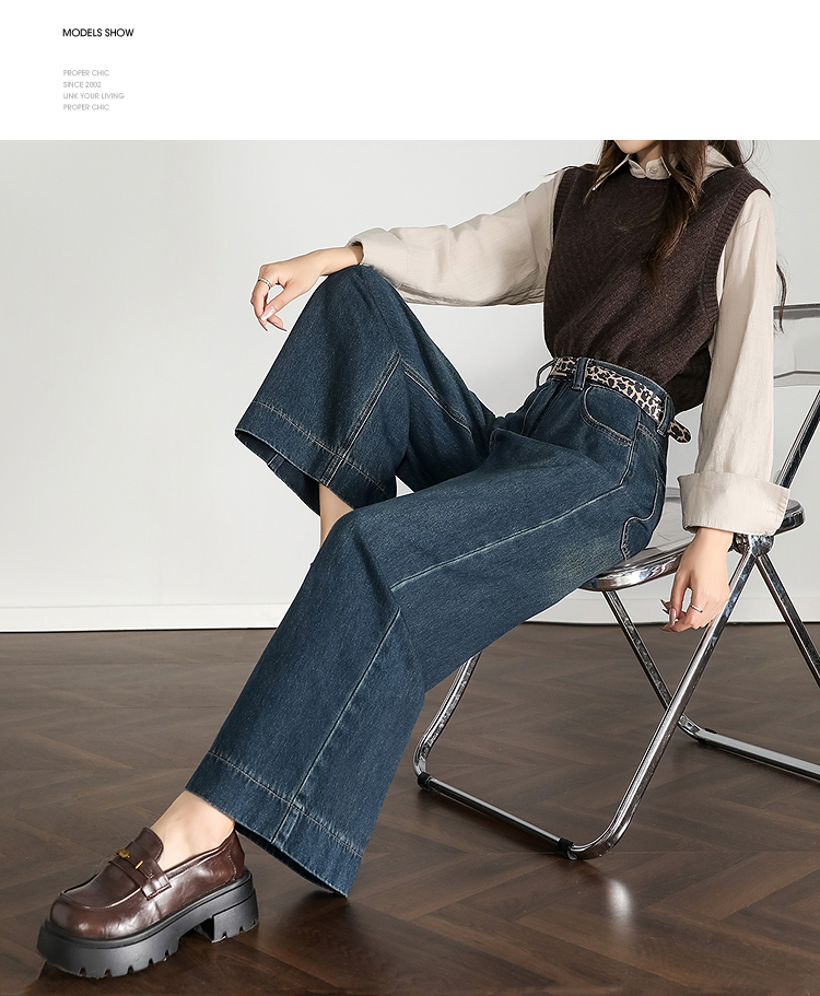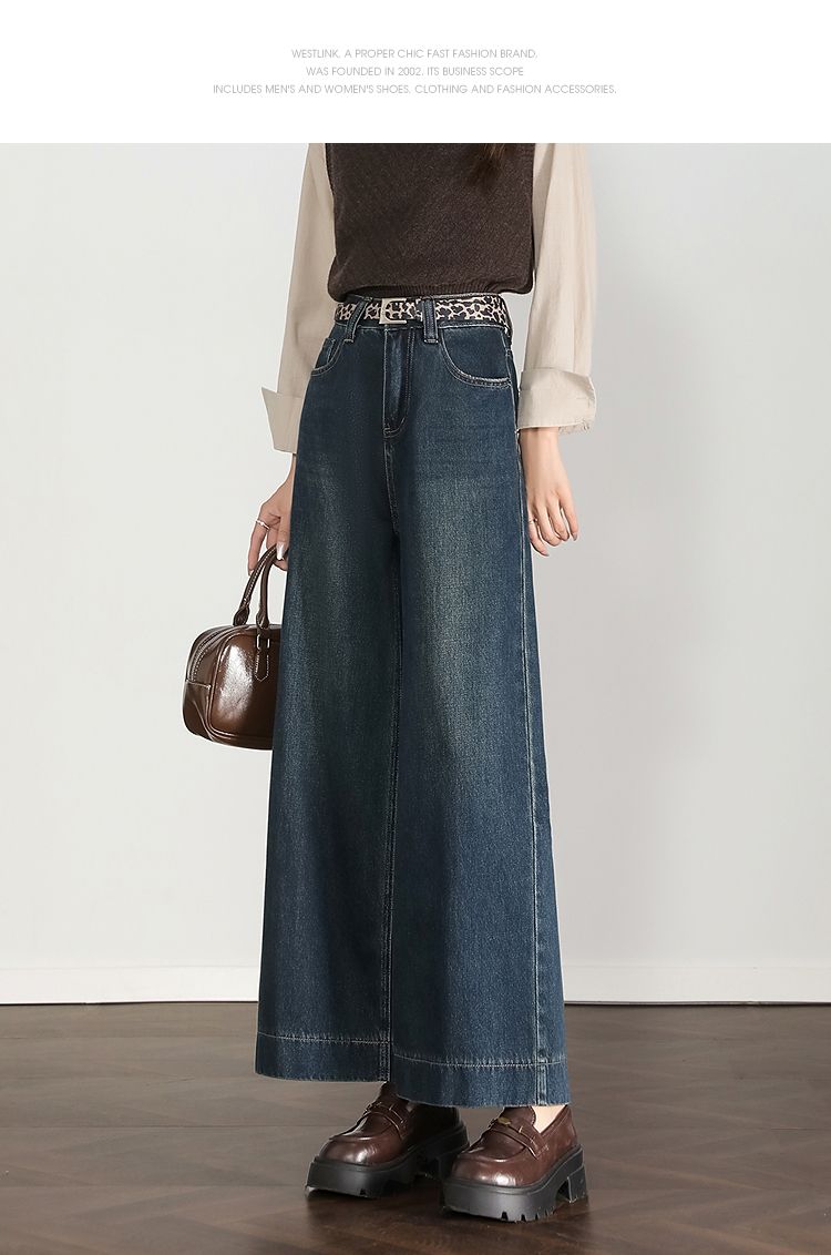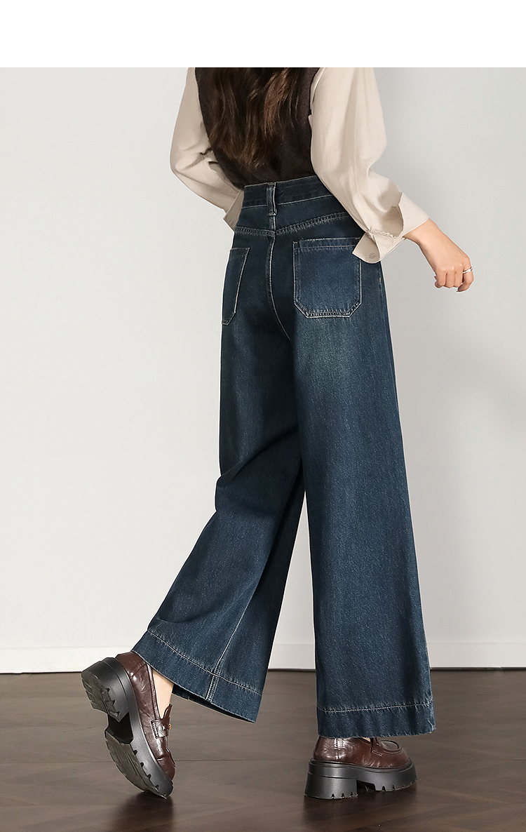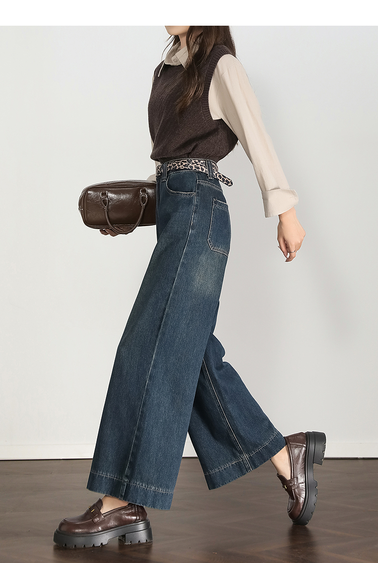 西遇复古水洗牛仔裤女秋季新款高腰宽松显瘦窄版直筒阔腿裤H0055181
