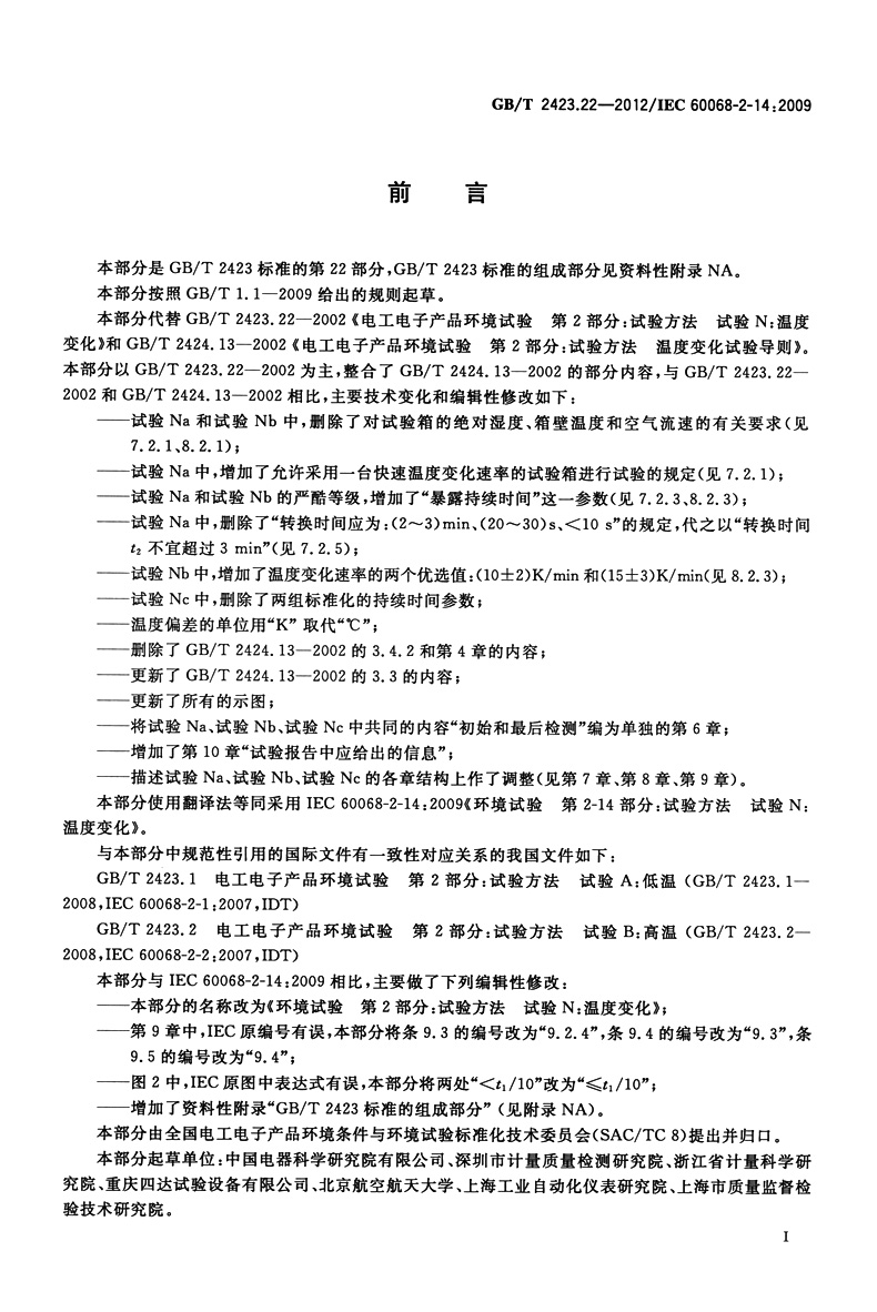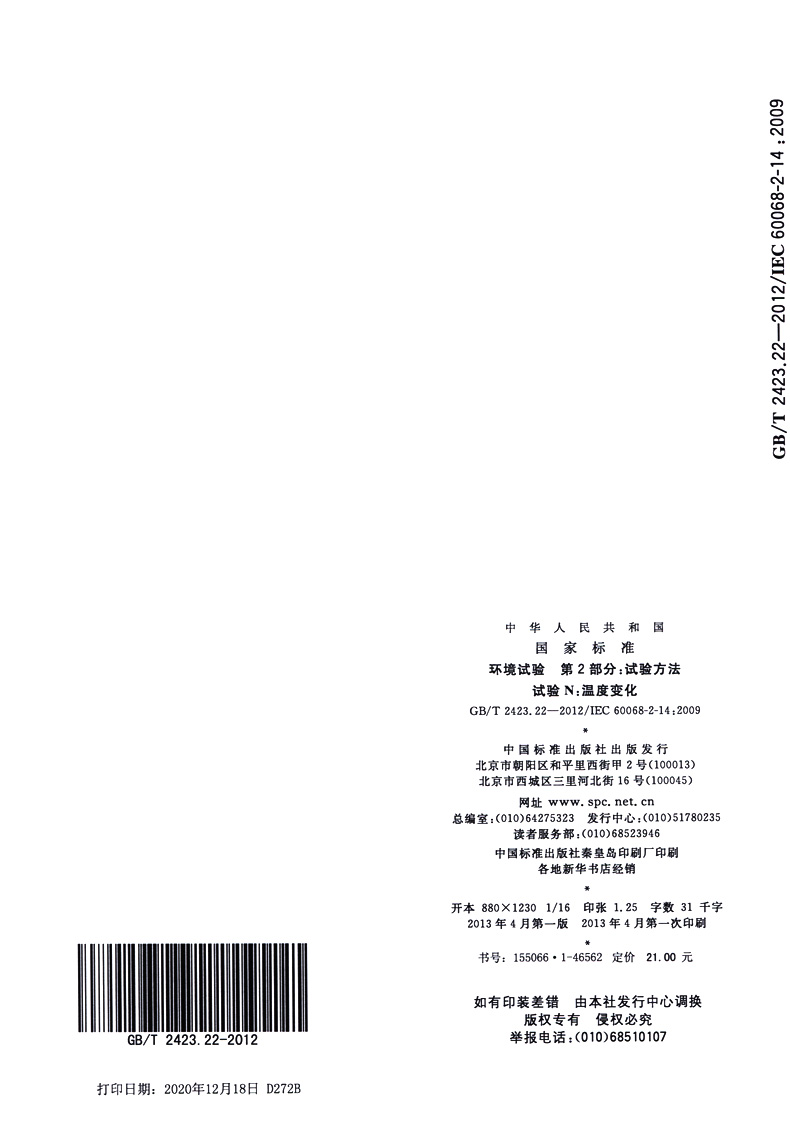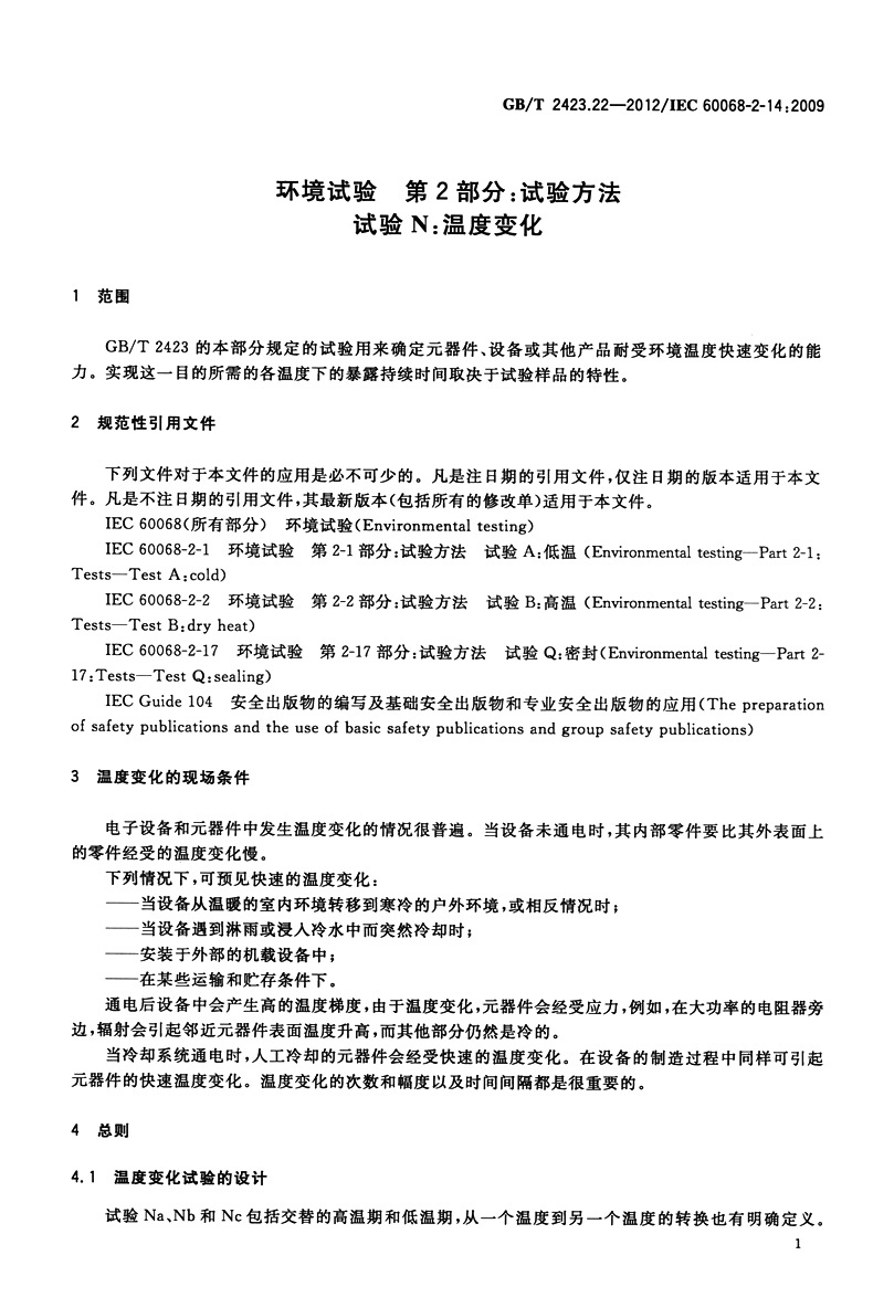 书名:速印不退 GB/T 2423.22-2012环境试验 第2部分:试验方法 试验N:温度变化