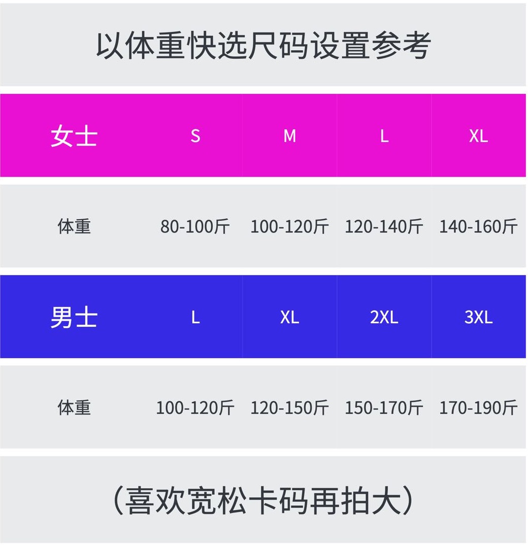 规格:1件装 尺码:男款L/XL/2XL/3XL,女款S/M/L/XL 颜色:黑色/白色