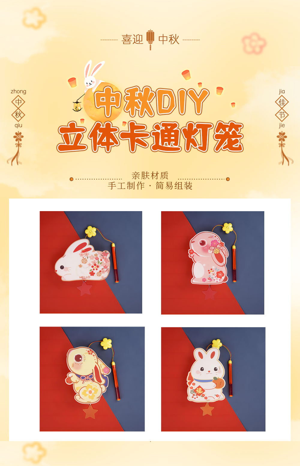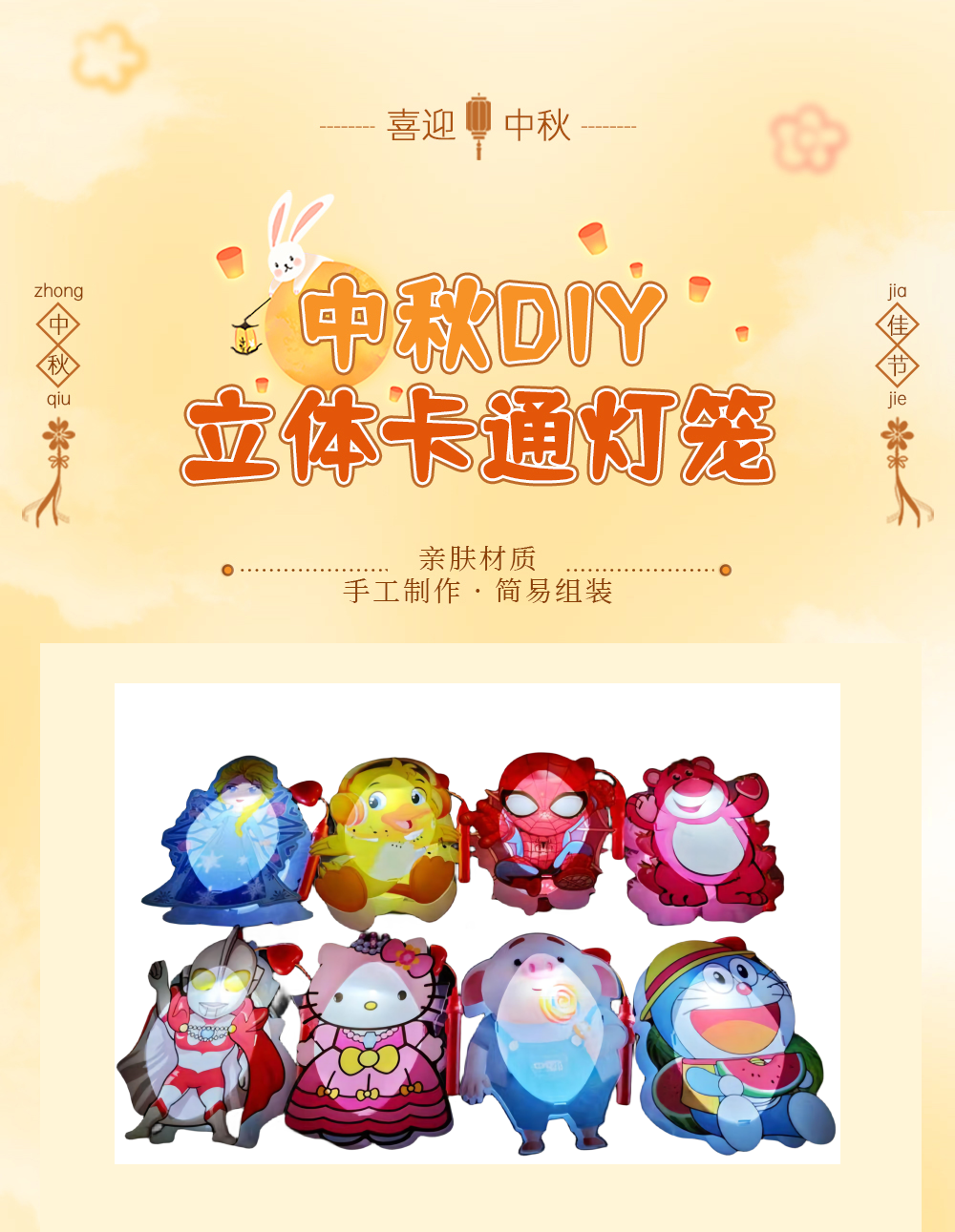 【中秋节卡通灯笼】 2023新款中秋灯笼 手提发光旋转唱歌