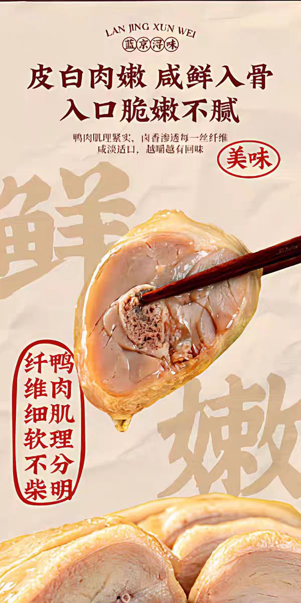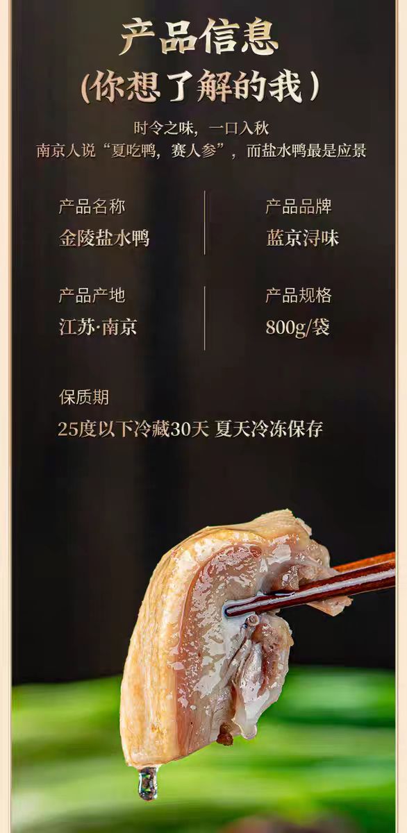 注意:盐水鸭是凉菜,不用加热,自然解冻后,开袋即食
