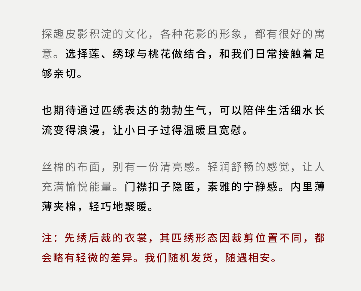 - 让内心温暖,让情感自由。坚持传统的手工作物,坚持匠心的制作精神。