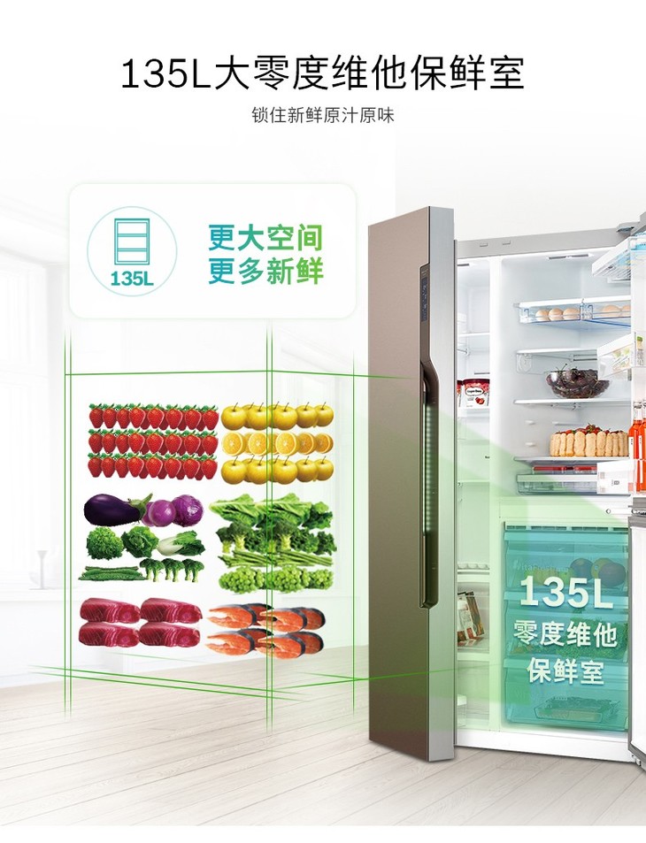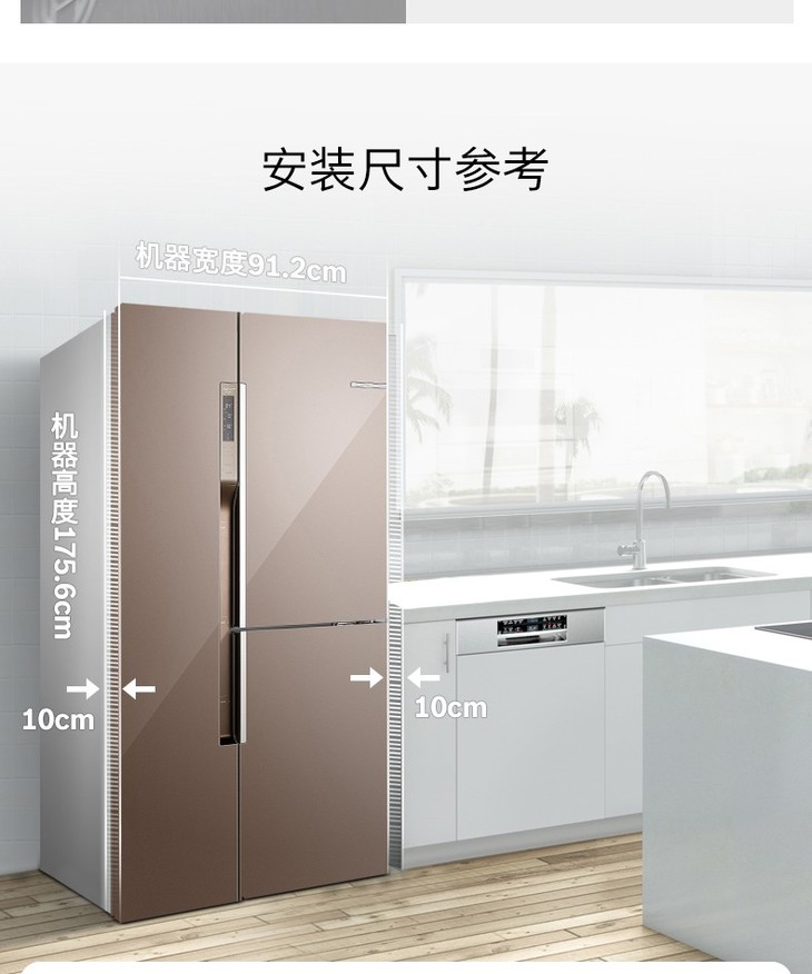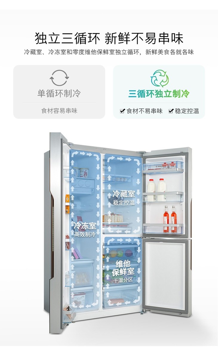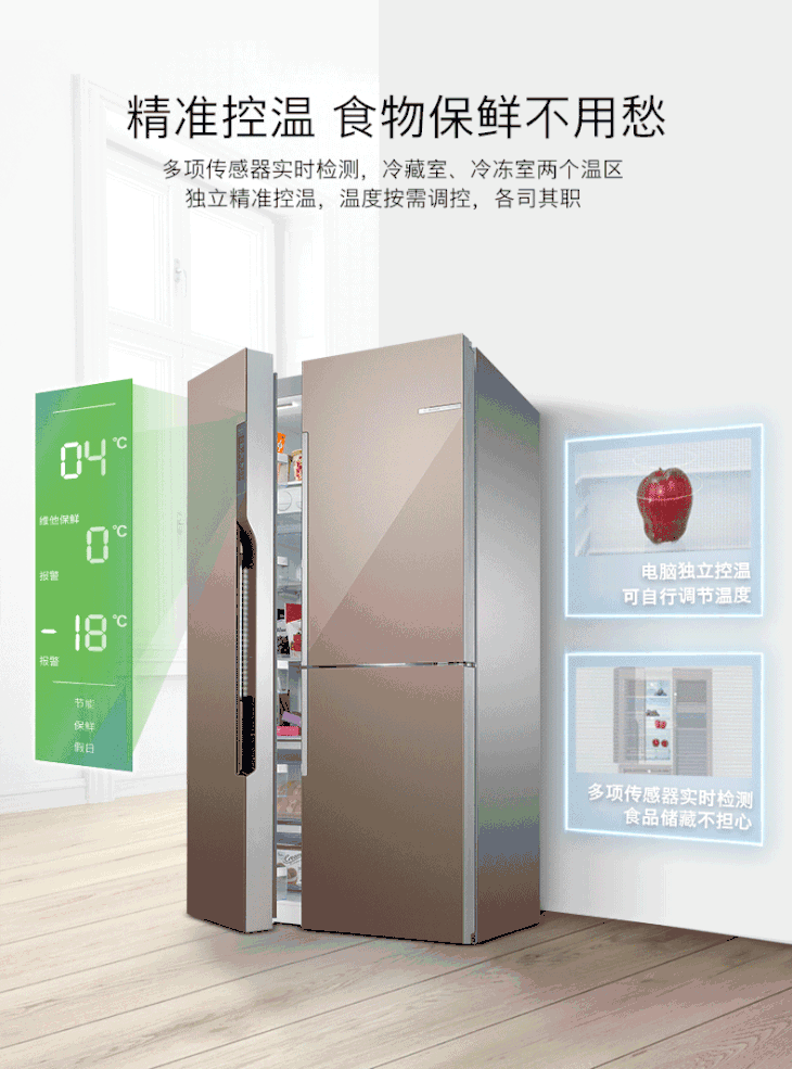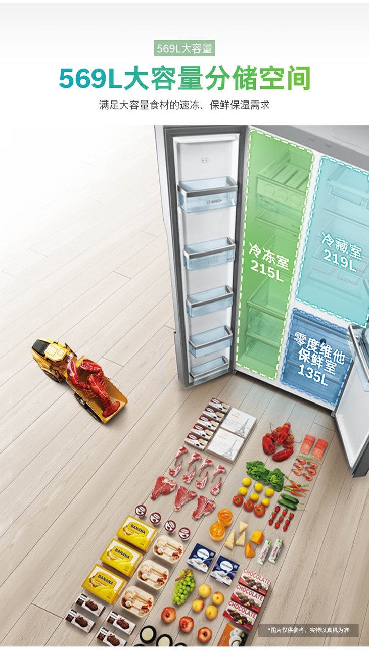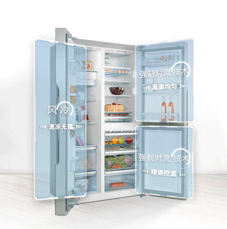 博世(BOSCH)569升 对开三门冰箱 大容量 混冷无霜 零度保鲜 玻璃面板BCD-569W(KAF96S62TI)