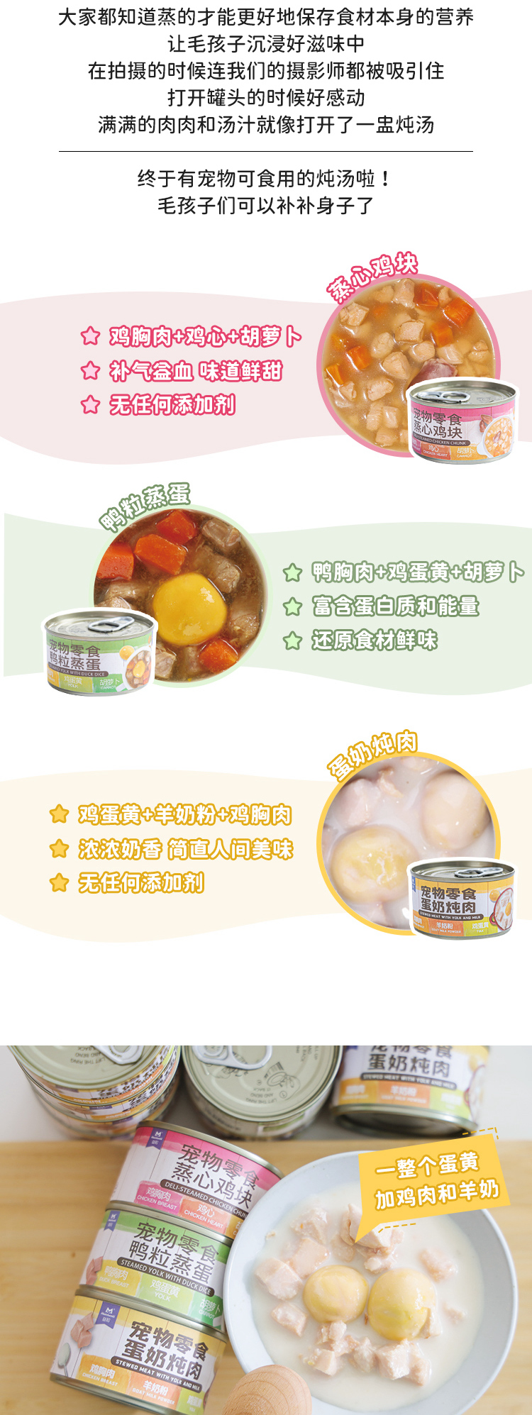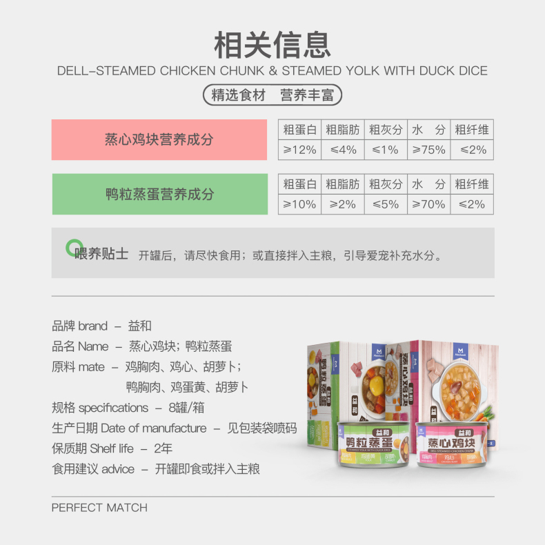 Matchwell益和宠物罐头蒸心鸡块鸭粒蒸蛋蛋奶炖肉宠物零食湿粮营养拌饭