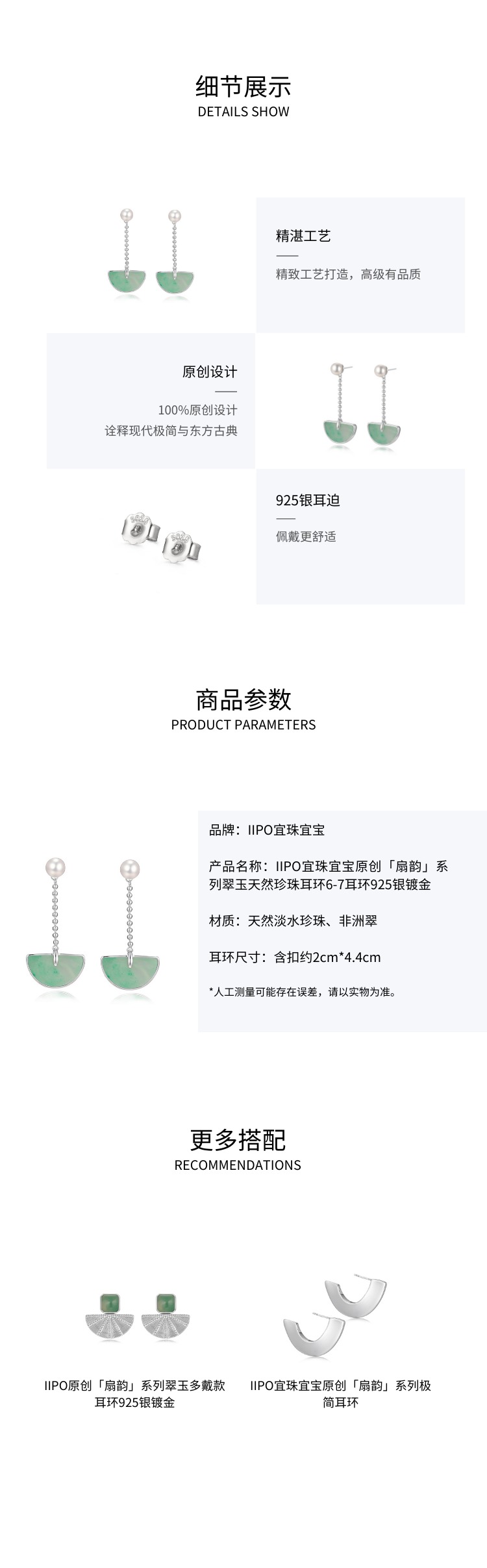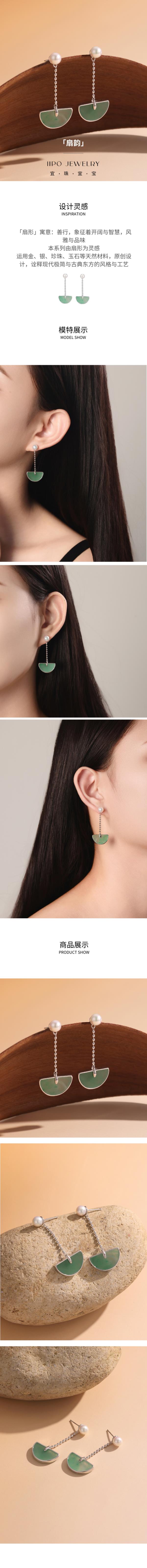 IIPO宜珠宜宝原创「扇韵」系列非洲翠天然珍珠耳环6-7耳环925银镀金(礼盒装)