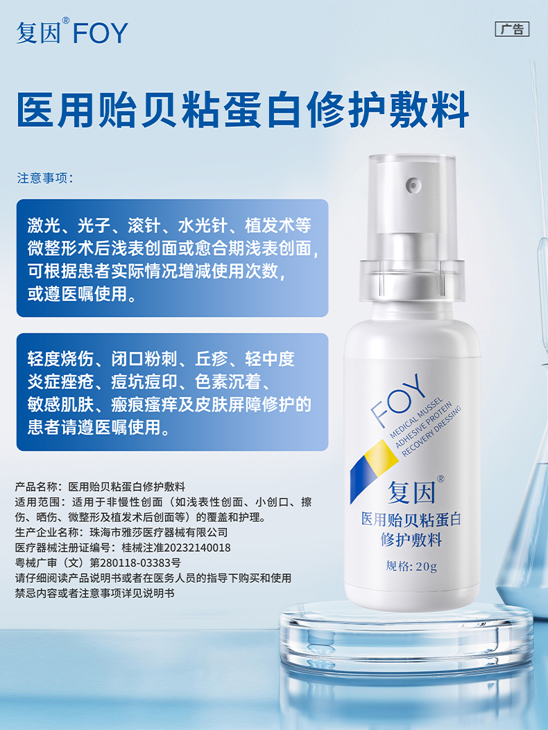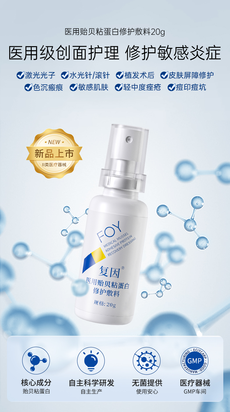 【2件9折,3件8折】复因FOY医用贻贝粘蛋白修护敷料20g*1支装【院线同款】(修复因子舒缓喷雾升级款) 修护敏感炎症 ***