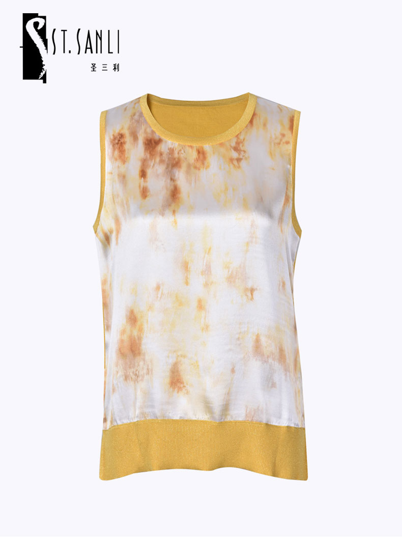 圣三利女装 桑蚕丝拼接针织套头无袖衫SL121M02