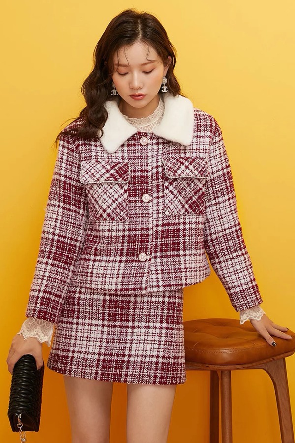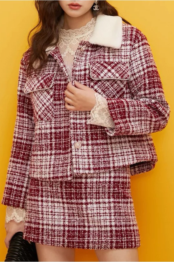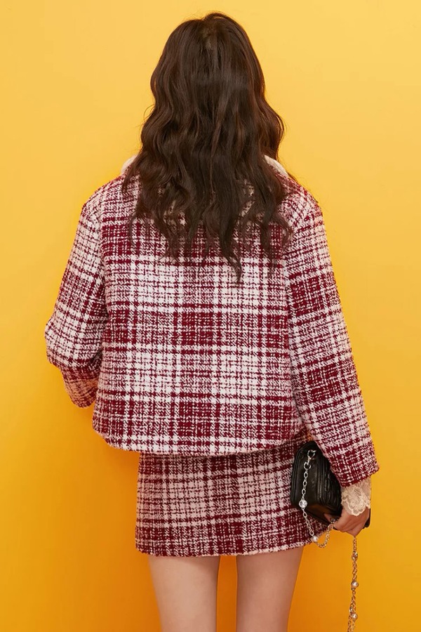凡兔/ONE-T 红色格纹半裙套装 11080