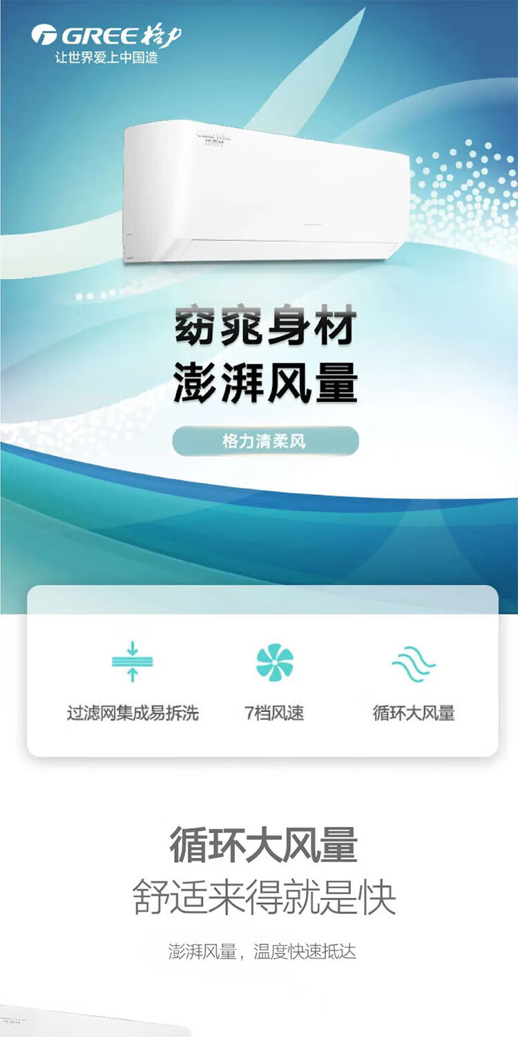 格力(GREE)清柔风变频冷暖1.5匹2级能效挂机空调 KFR-35GW/(35563)FNhAa-B2JY01