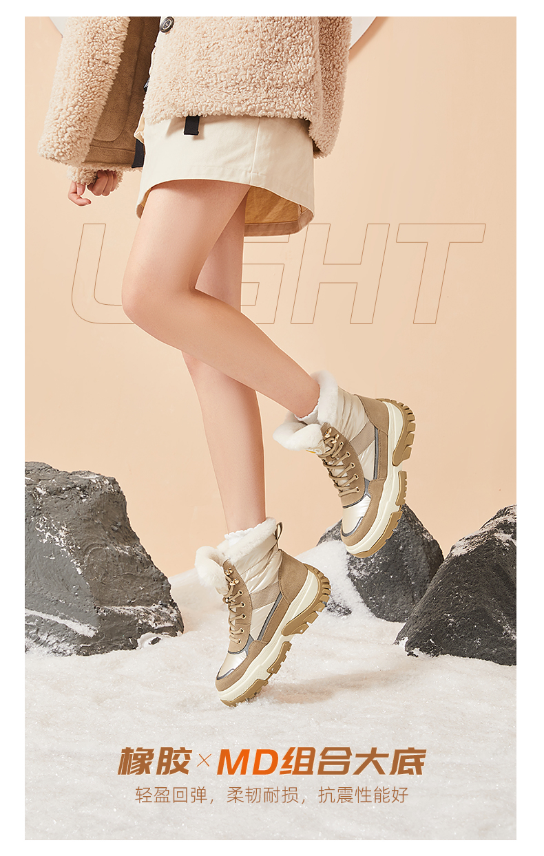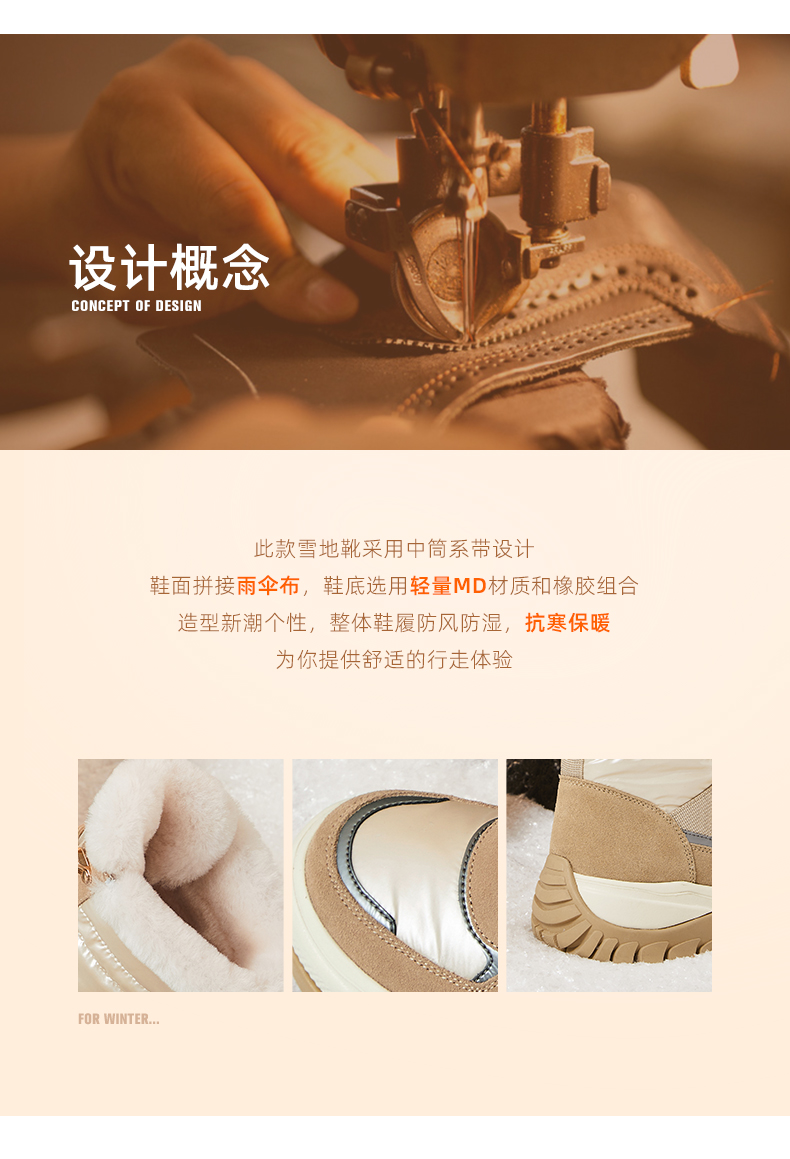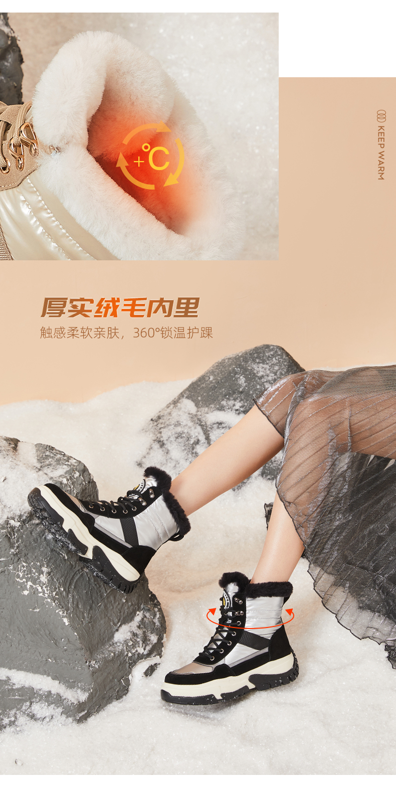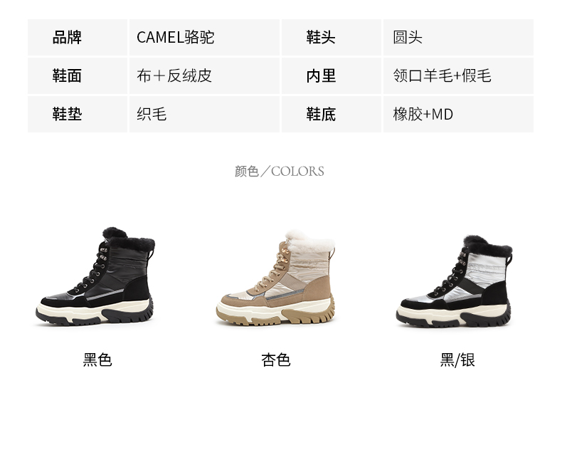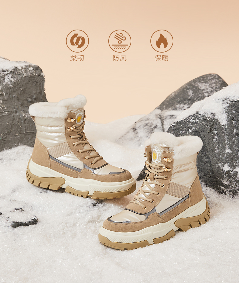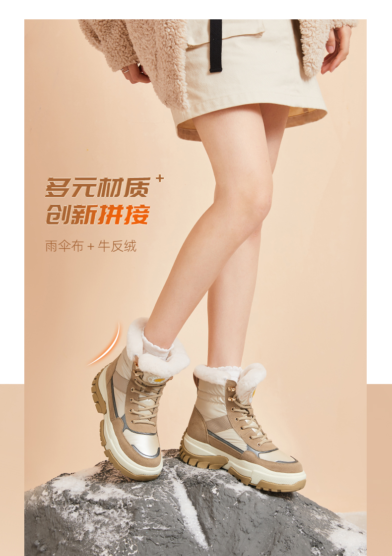 骆驼女鞋2021冬季新款厚底防水保暖雪地靴女士靴子加厚中筒棉靴女A14275698