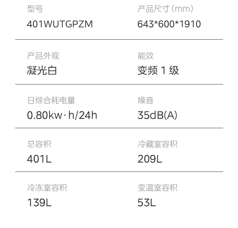 美的 冰箱 BCD-401WUTGPZM 凝光白