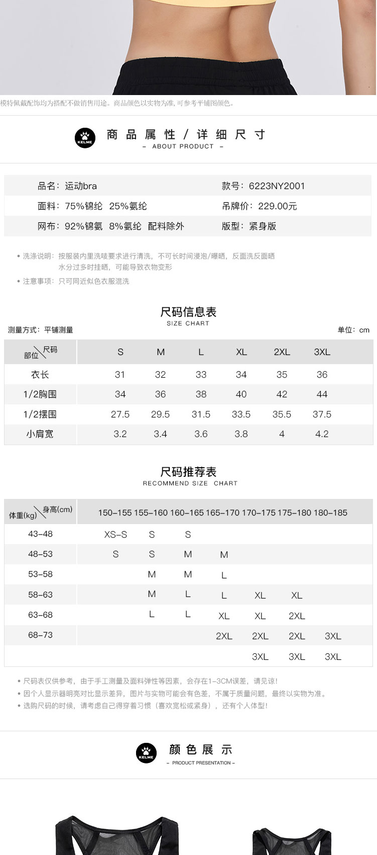 KELME卡尔美高弹瑜伽健身跑步运动内衣收副乳后背网面美背式文胸6223NY2001