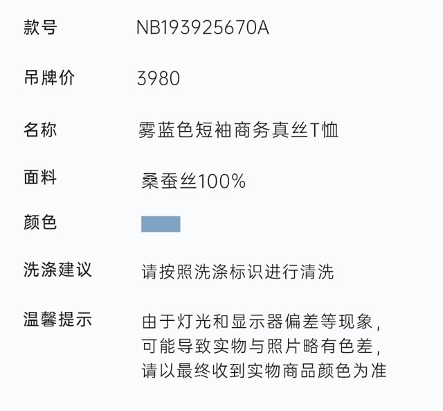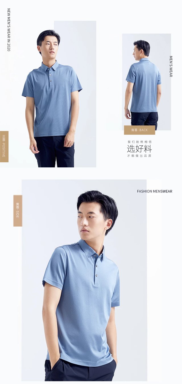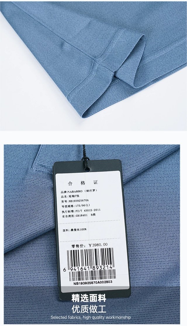 纳巴罗百分百上午重磅真丝36针防勾丝短袖翻领T恤NB193925670A