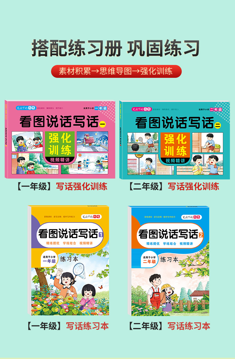 一年级二年级儿童看图说写话作文提分思维训练写作素材积累思维导图强化训练