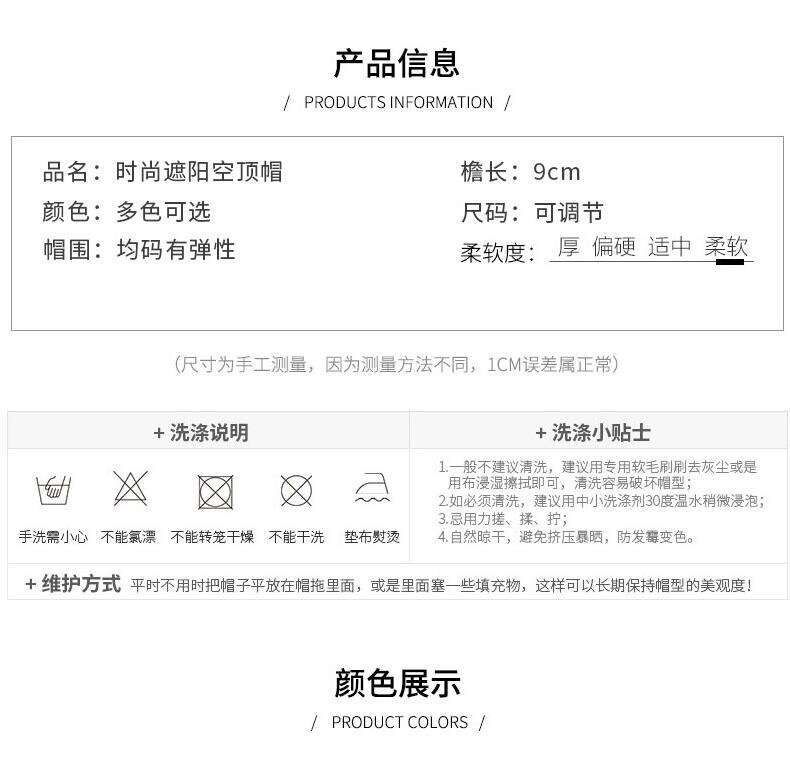 【夏季空顶帽】帽子女休闲韩版防晒太阳帽鸭舌帽上衣遮阳帽女