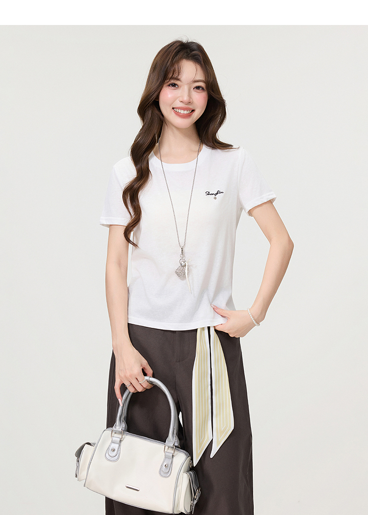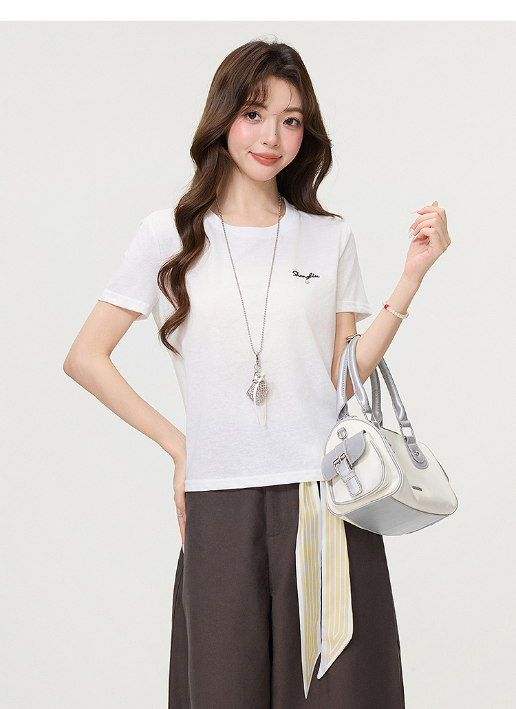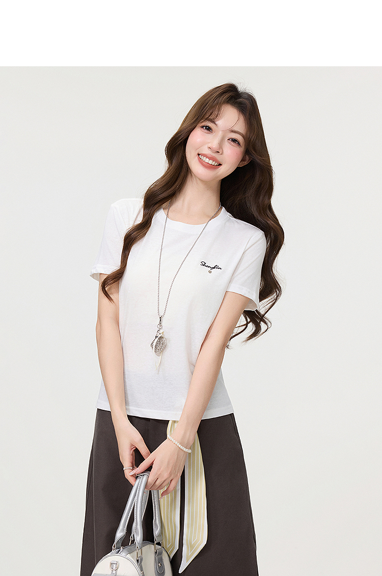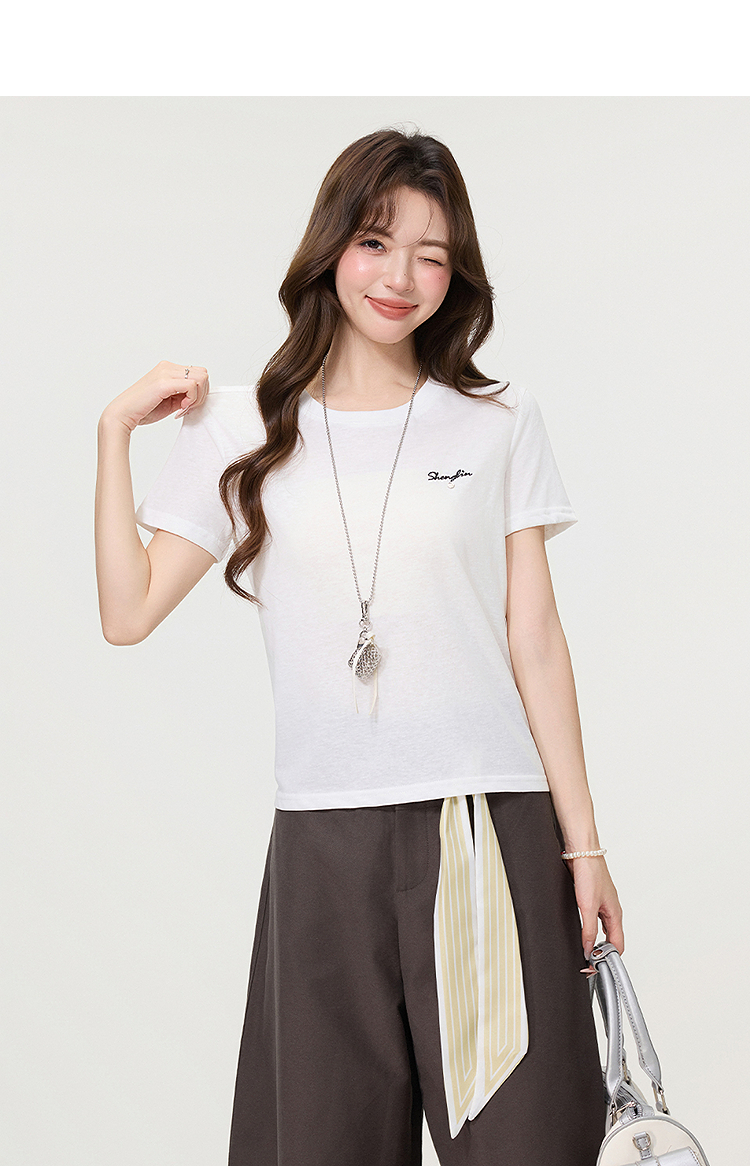 西遇字母刺绣白色短袖T恤女2026年夏季新款正肩圆领休闲百搭上衣SS060250