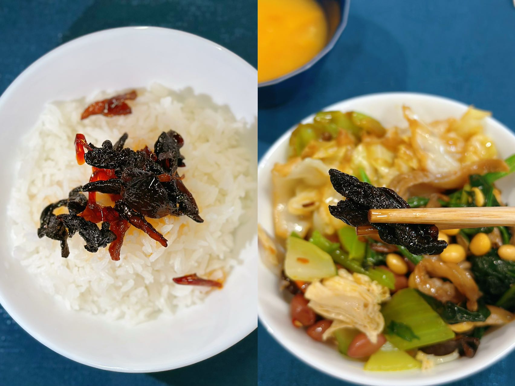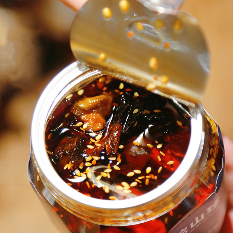 【配料表】:鹿茸菇、姬松茸、黑皮鸡纵、羊肚菌、杏鲍菇、食用植物油、食用盐、白砂糖、辣椒、花椒、白芝麻,香辛料(不含五辛)