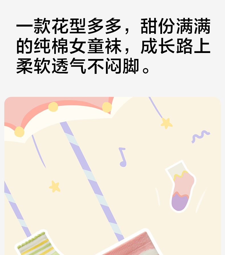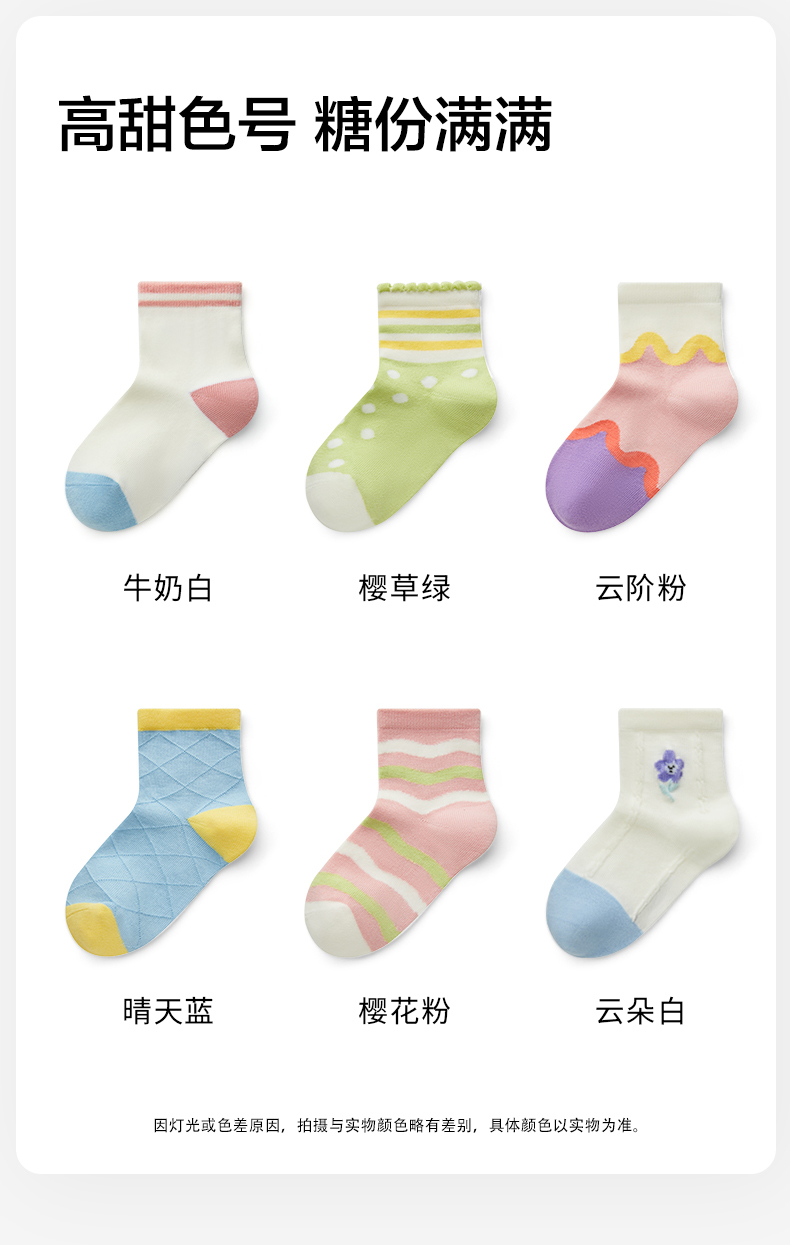 有棵树纯棉无骨女童中筒袜5双装C-V1006