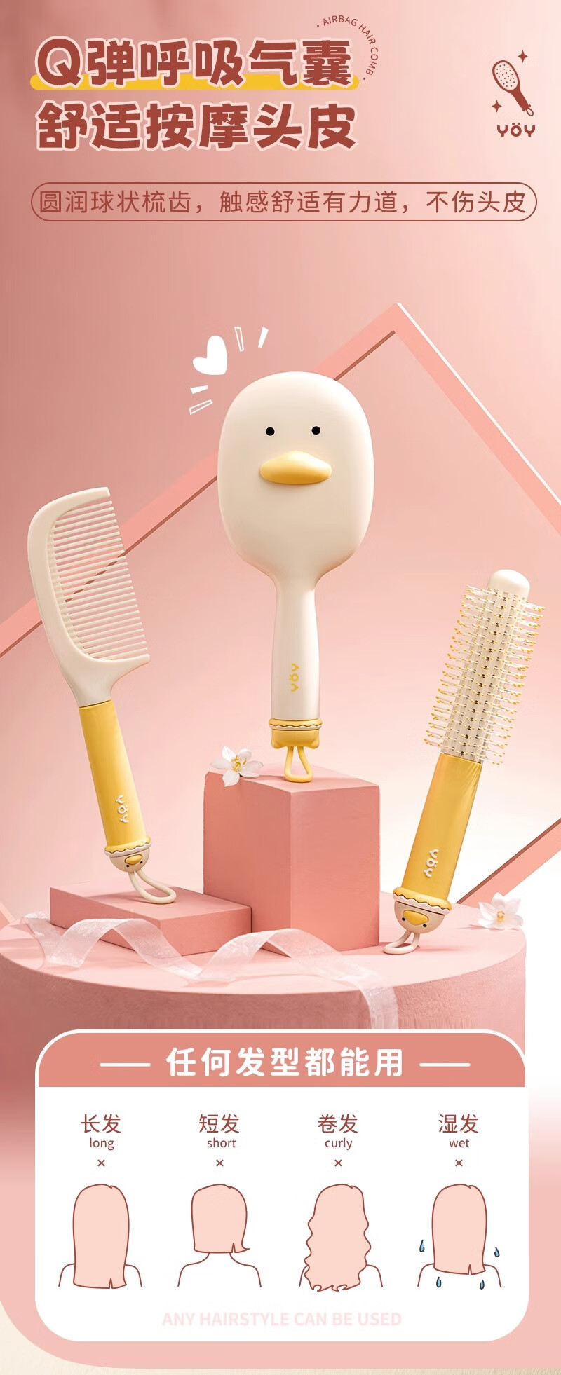 物乎头皮按摩梳气垫梳子女气囊梳美发梳造型梳空气梳卷发梳送女生礼物 100052681400