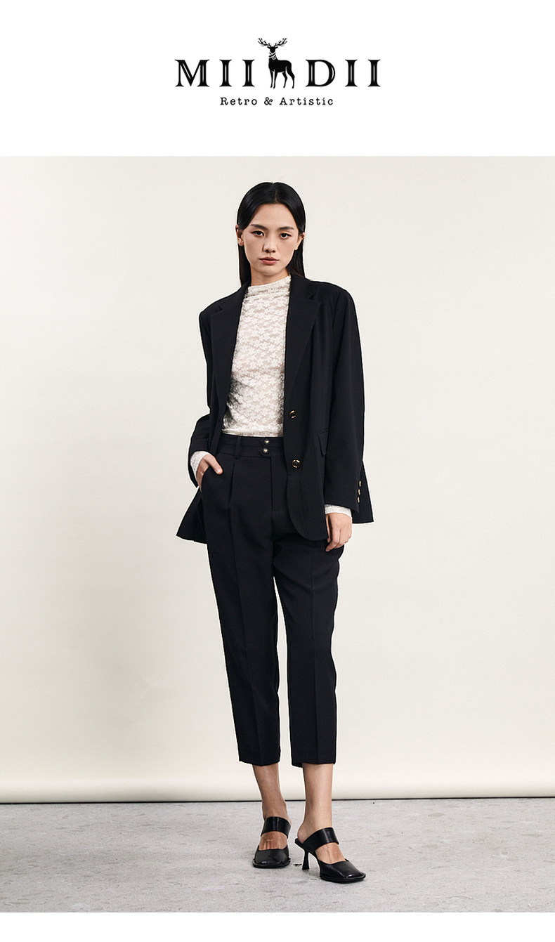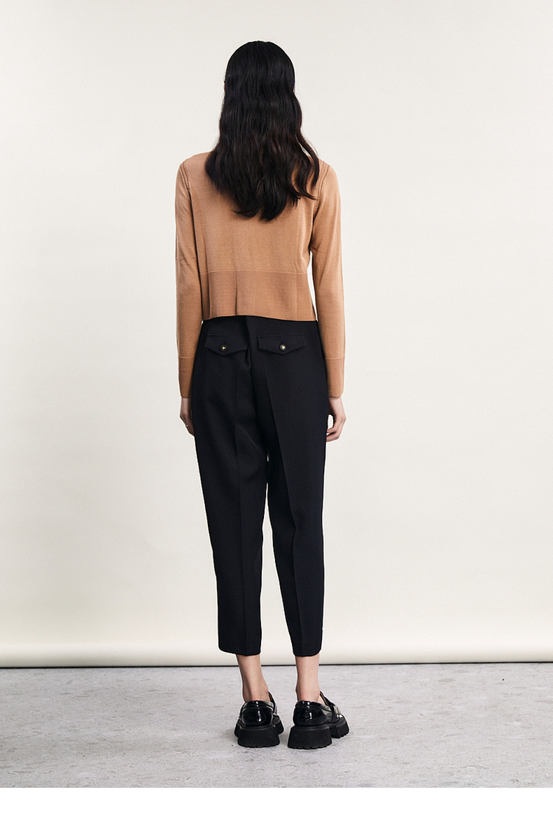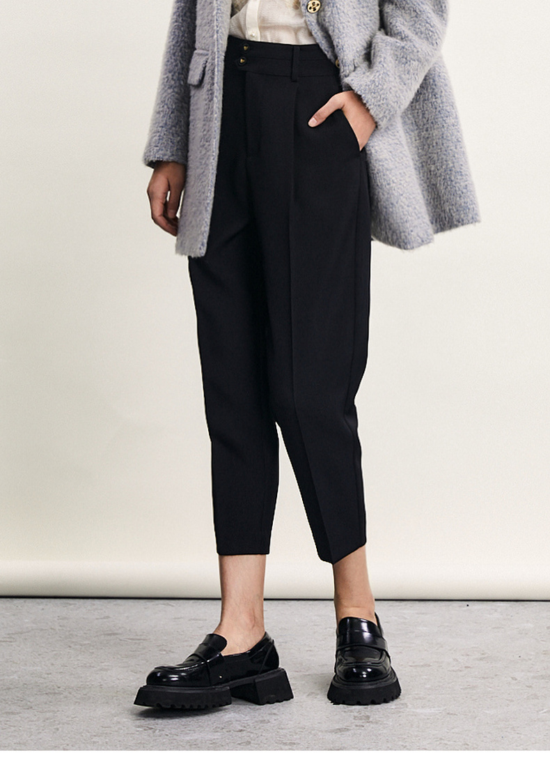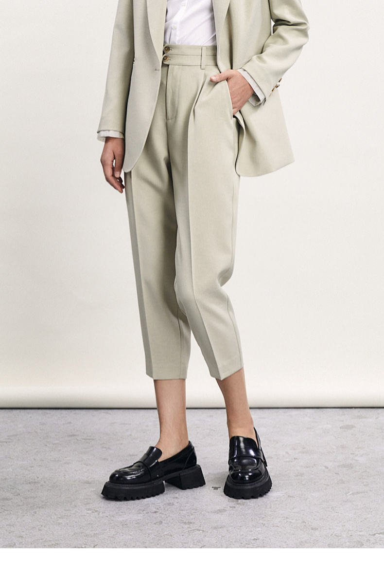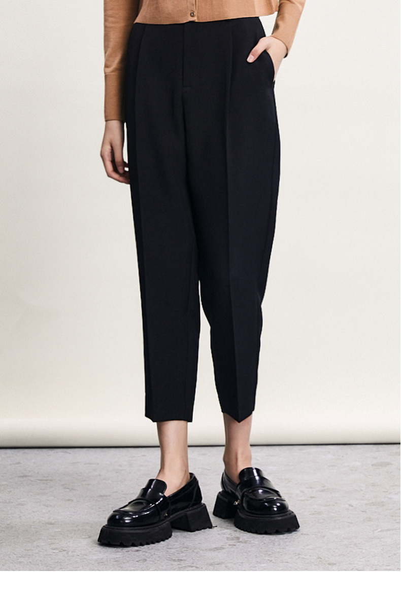 谜底西裤女2024春季新款通勤风简约时尚高腰纯色九分裤241MK0077
