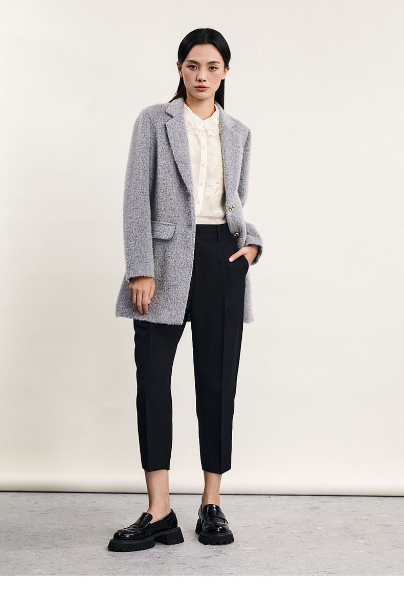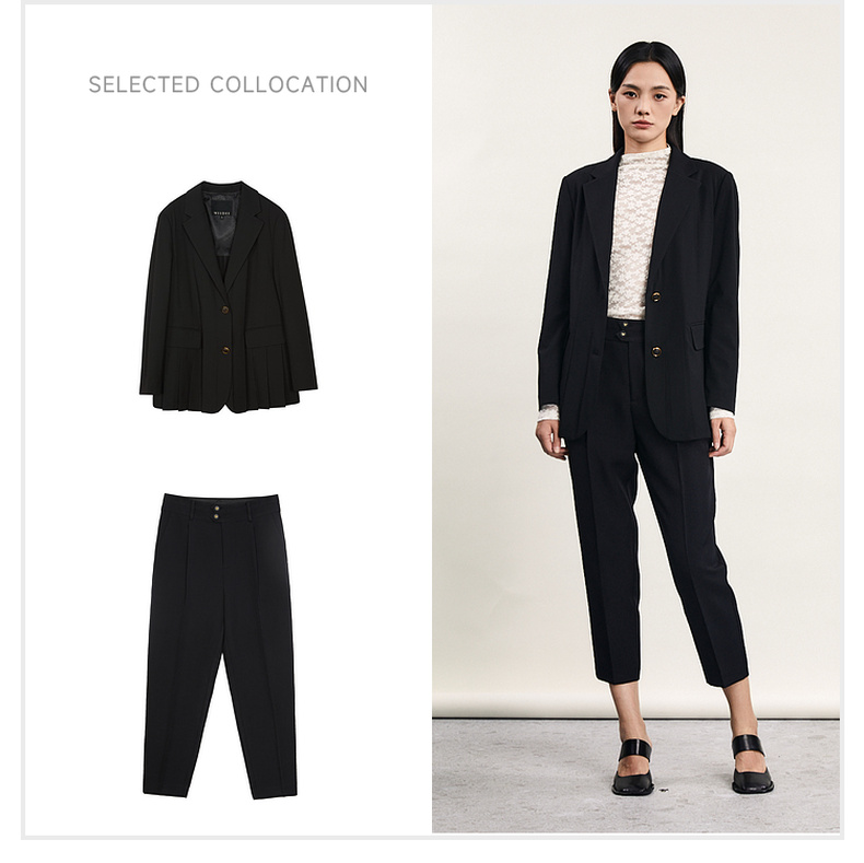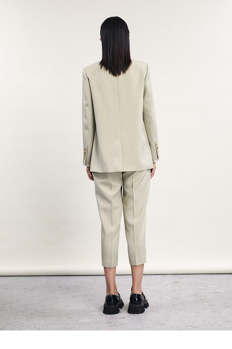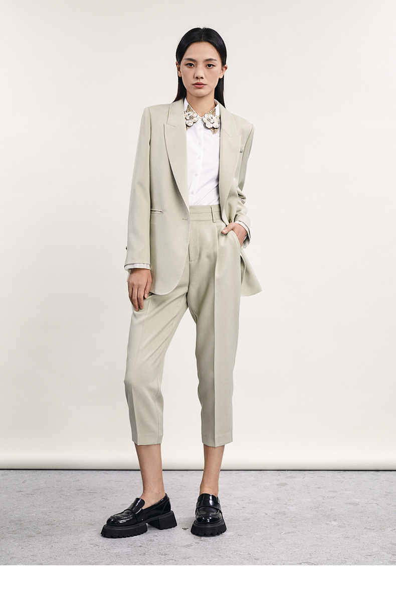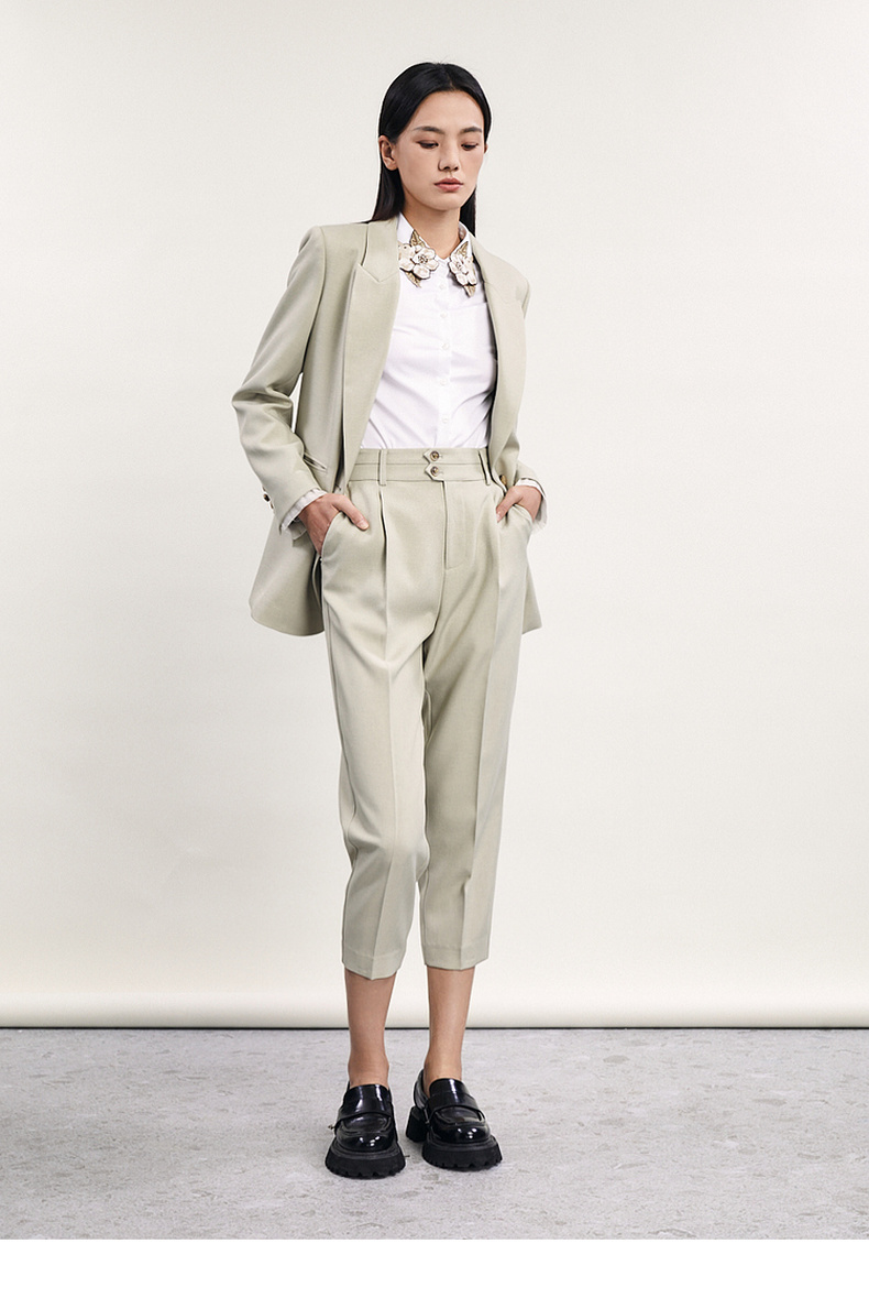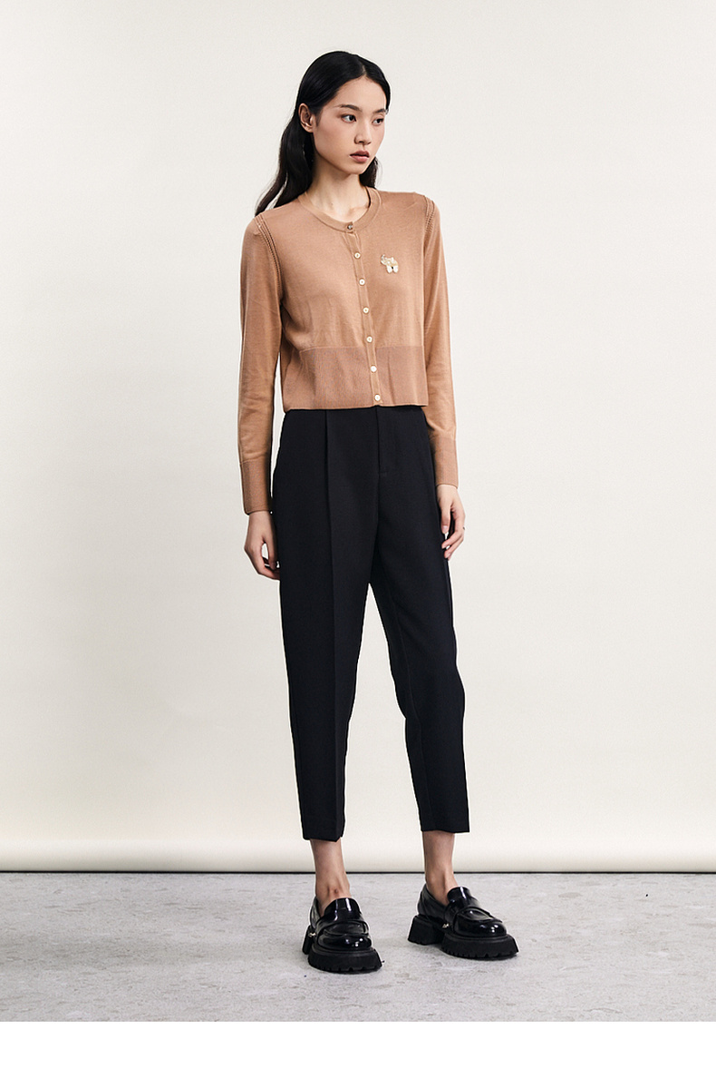 谜底西裤女2024春季新款通勤风简约时尚高腰纯色九分裤241MK0077