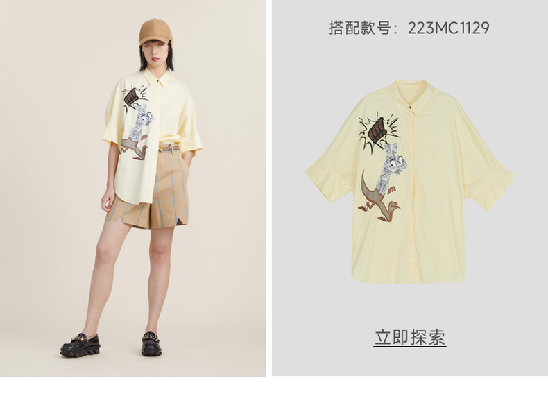 谜底牛仔外套女2023秋新款复古时尚后背绣花中长款长袖233MW1146
