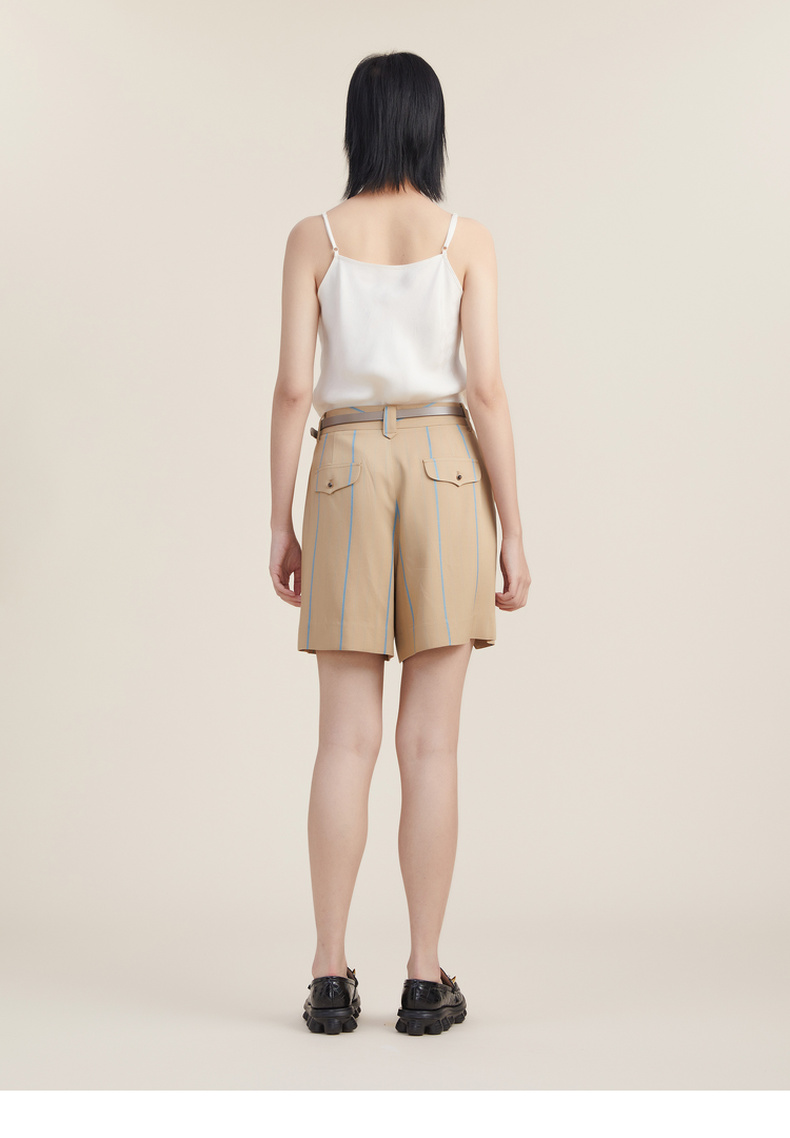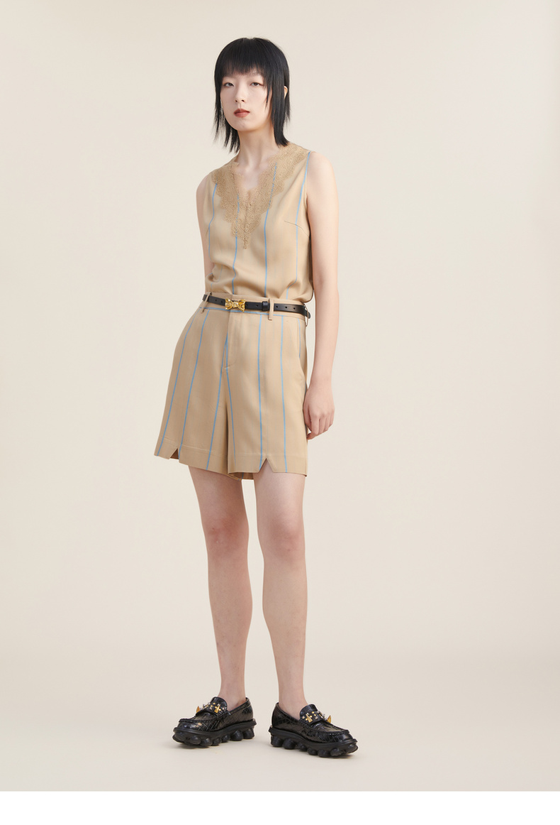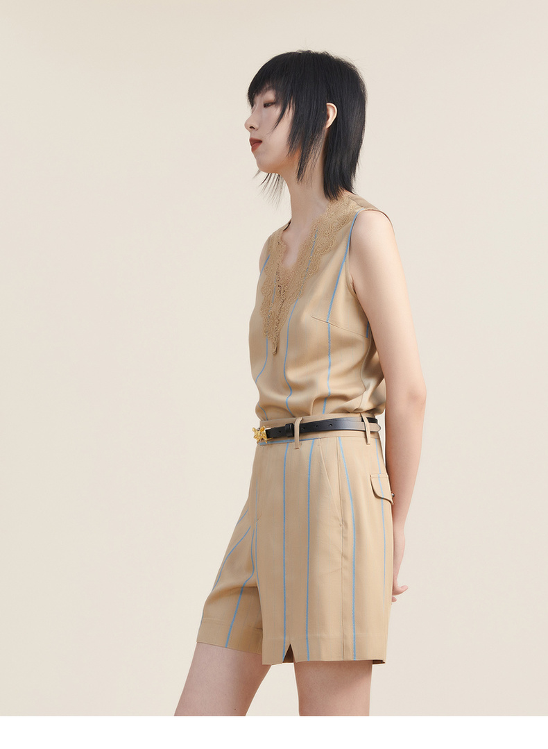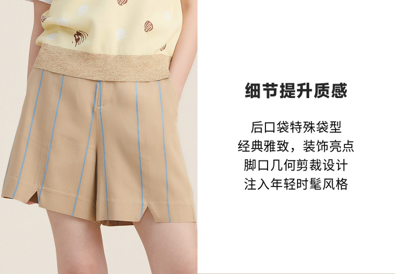 谜底西装短裤女2022秋新品高腰外穿显瘦竖条纹休闲裤223MK1063
