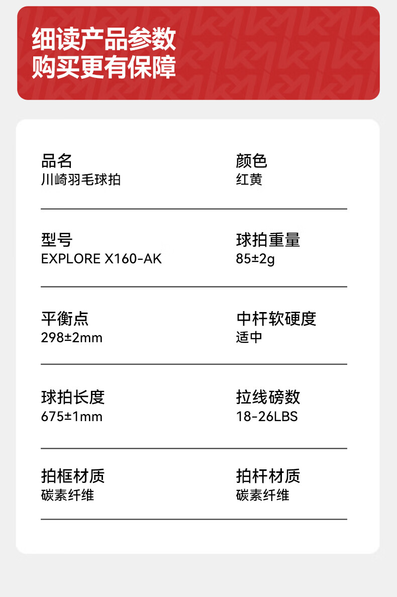 【小家电】川崎 羽毛球拍 单拍X160-AK HF