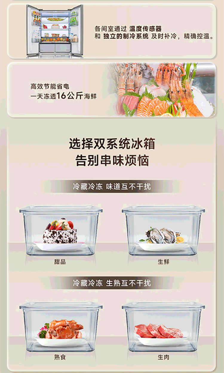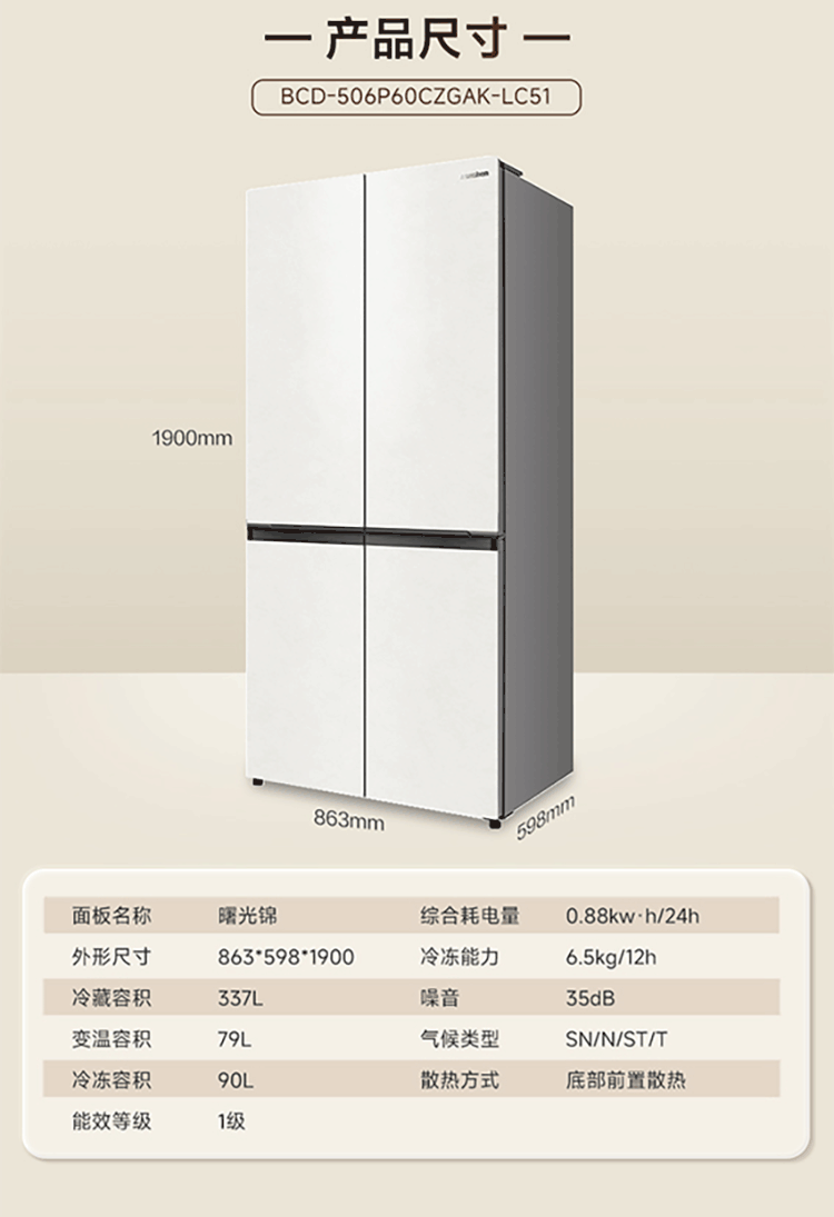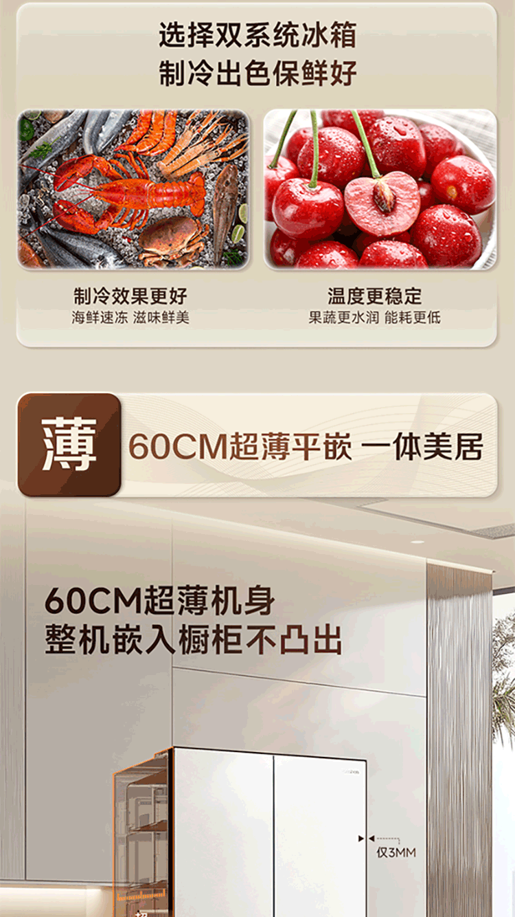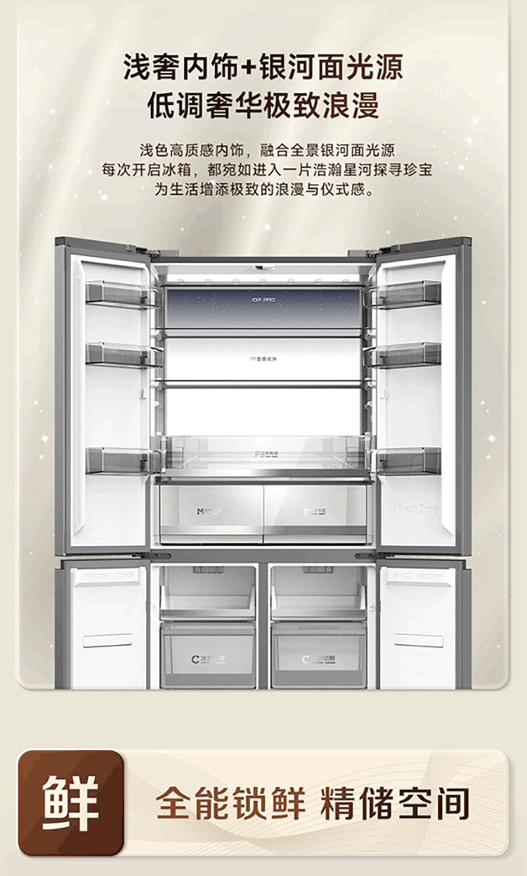 容声506升智感双净Max双系统四循环60CM平嵌对开门冰箱一级能效变频风冷 BCD-506P60CZGAK曙光锦