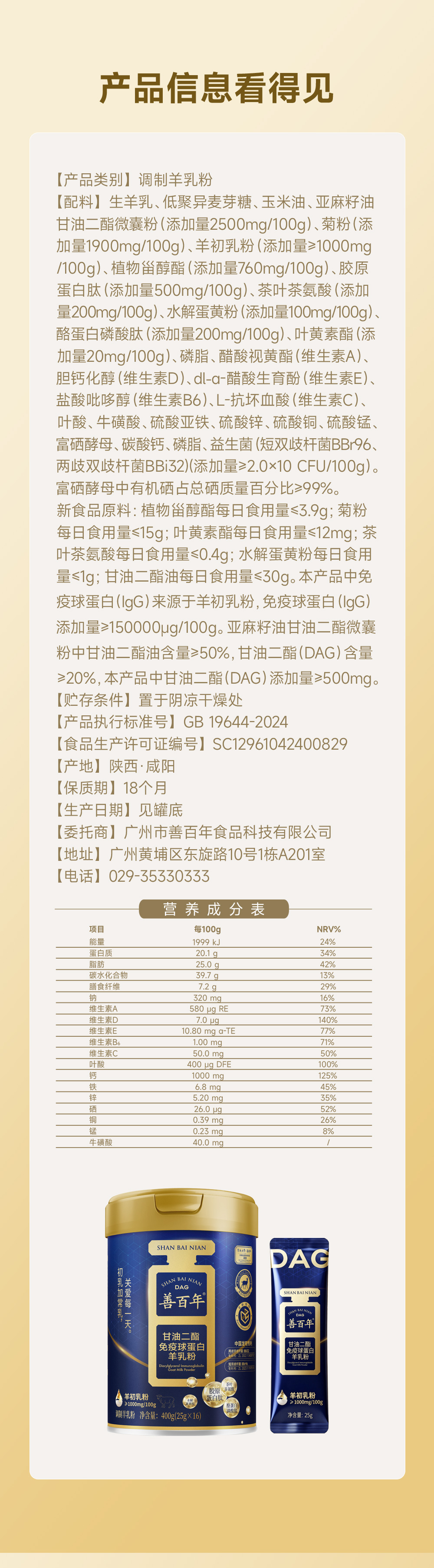 善百年甘油二酯免疫球蛋白羊乳粉25g×16袋