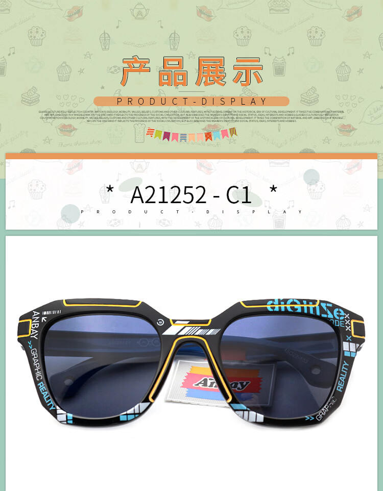 安比男孩防紫外线太阳镜儿童时尚防强光墨镜2-10岁宝宝遮阳眼镜A21252