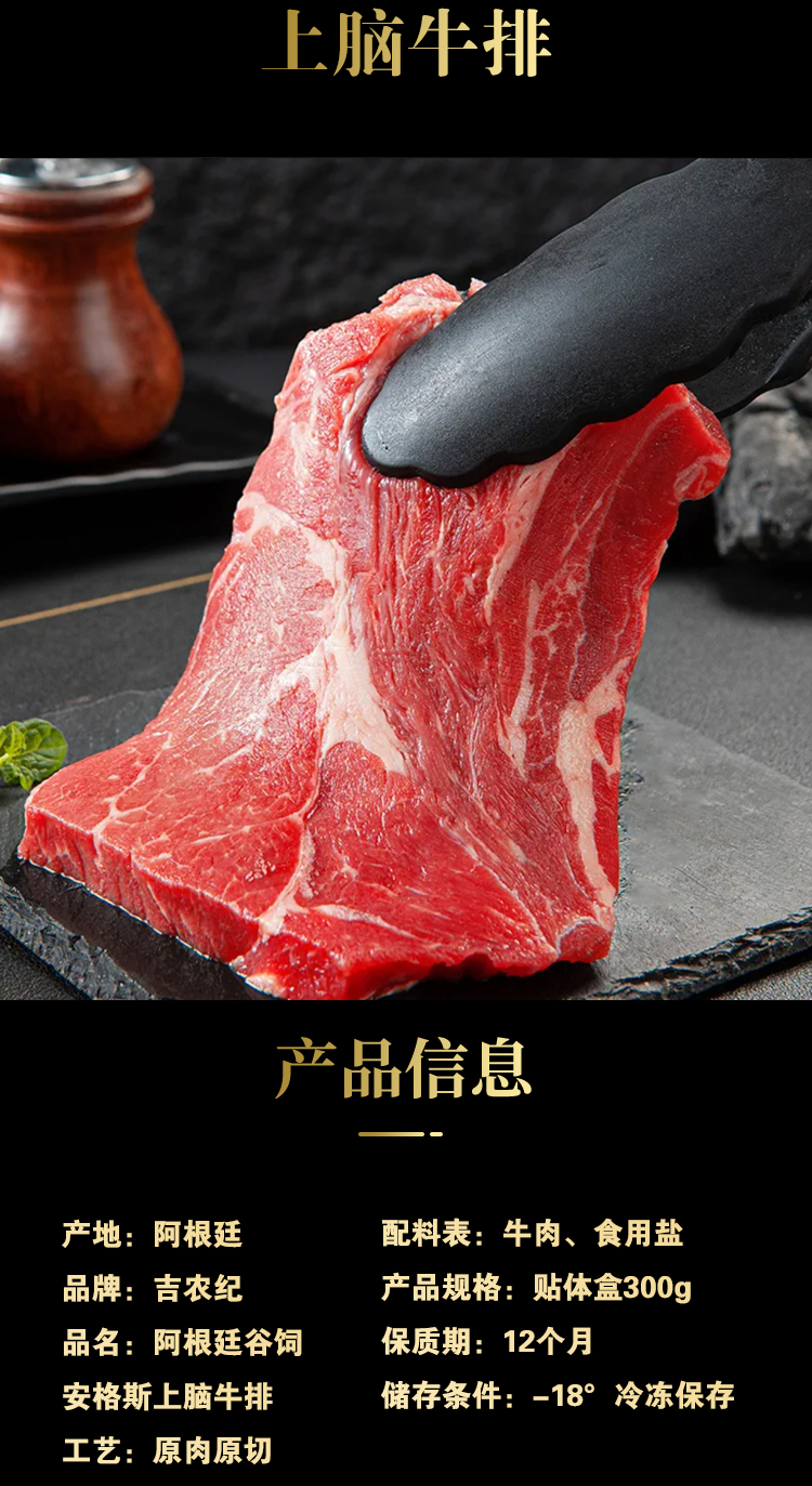 吉农纪阿根廷谷饲120天安格斯上脑牛排300g