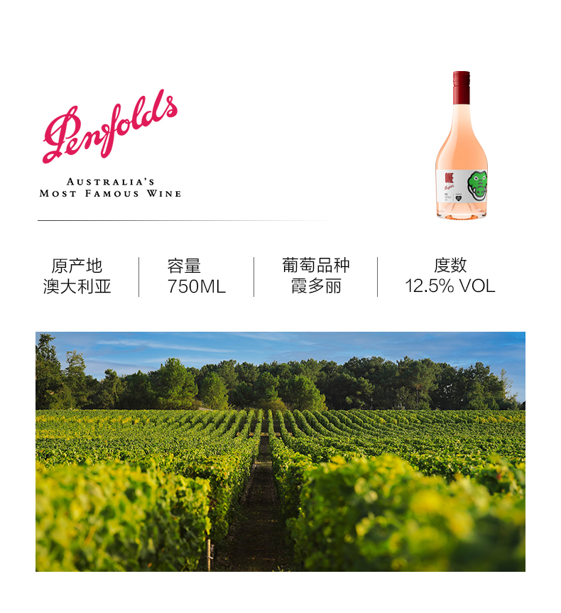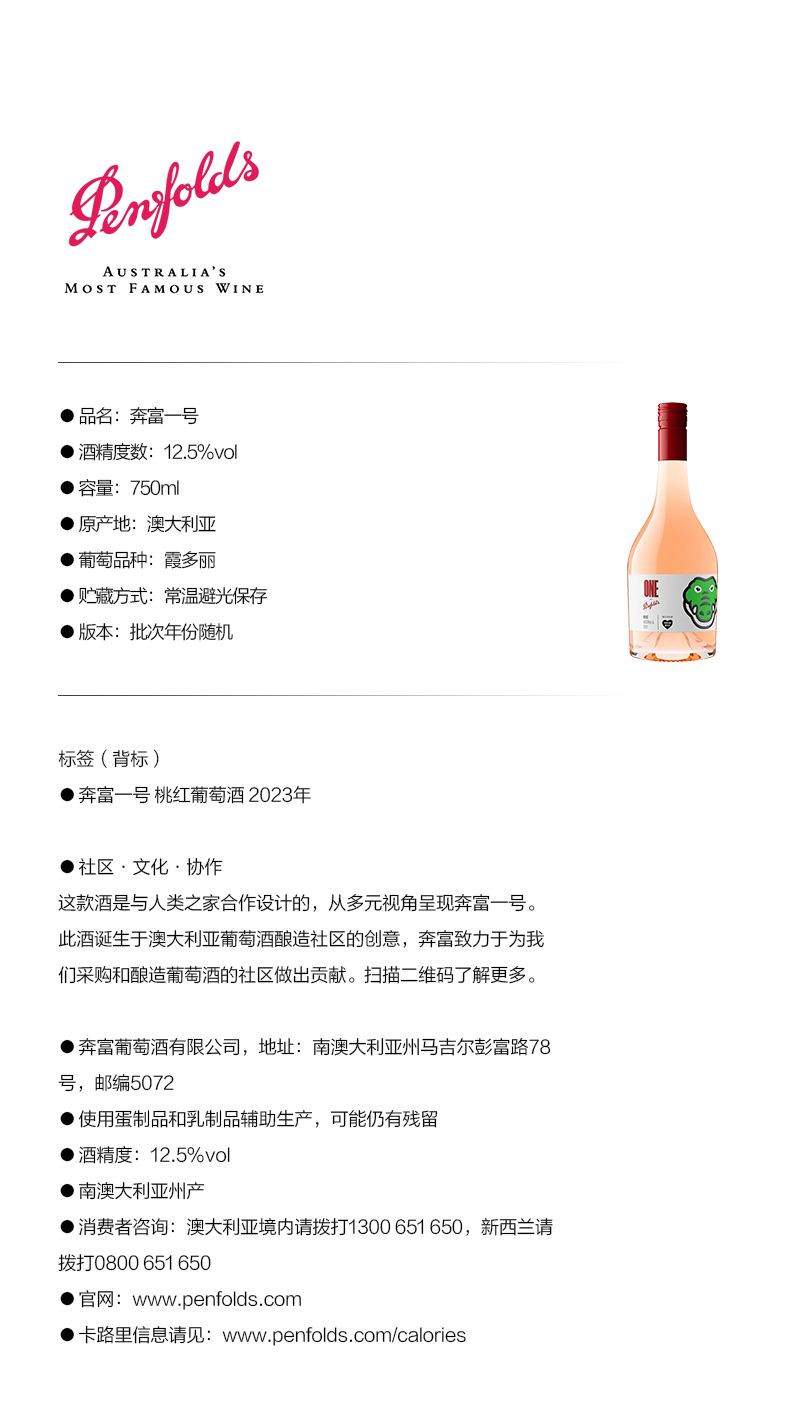 奔富(Penfolds)一号桃红葡萄酒裸瓶旋盖750ml单支 澳洲原产【保税进口】