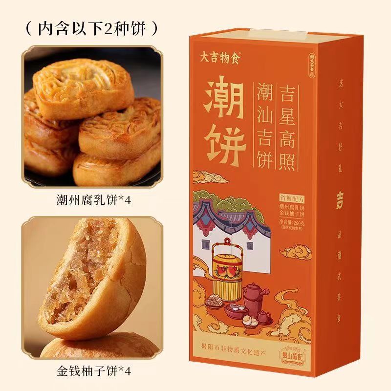 【年货节特惠】大吉物食 潮糖福喜临门潮汕 四锦糖 椰丝味软糖+黑芝麻味软糖+仁香糖 +芝麻明糖各*3 220g