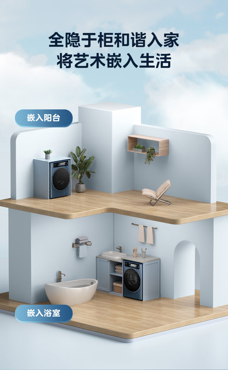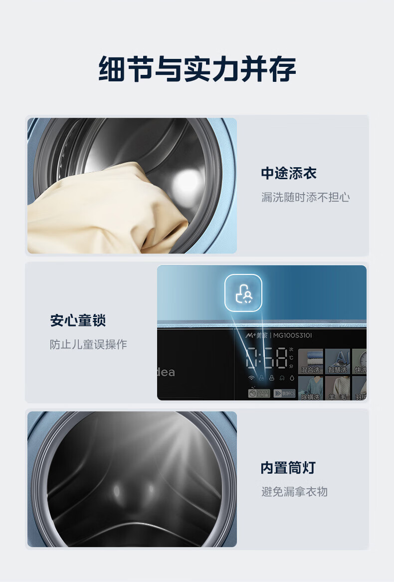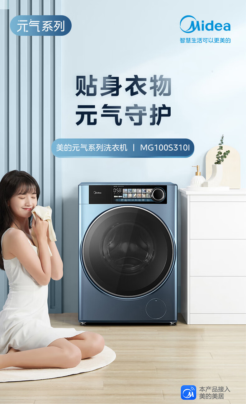 美的洗烘套装全自动10公斤大容量滚筒洗衣机祛味空气洗智能家电快净科技省时MG100S310I+MH100-HS5