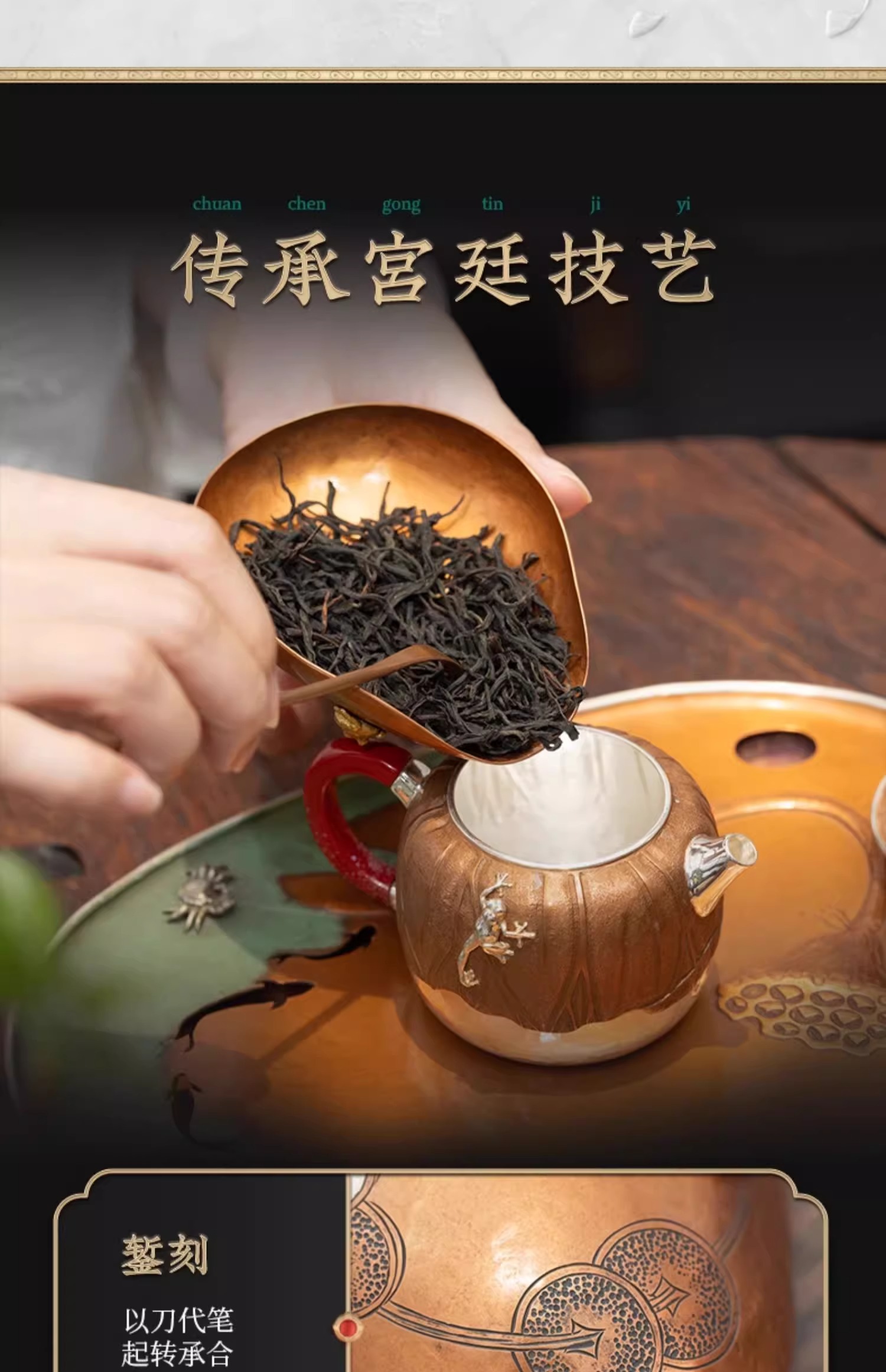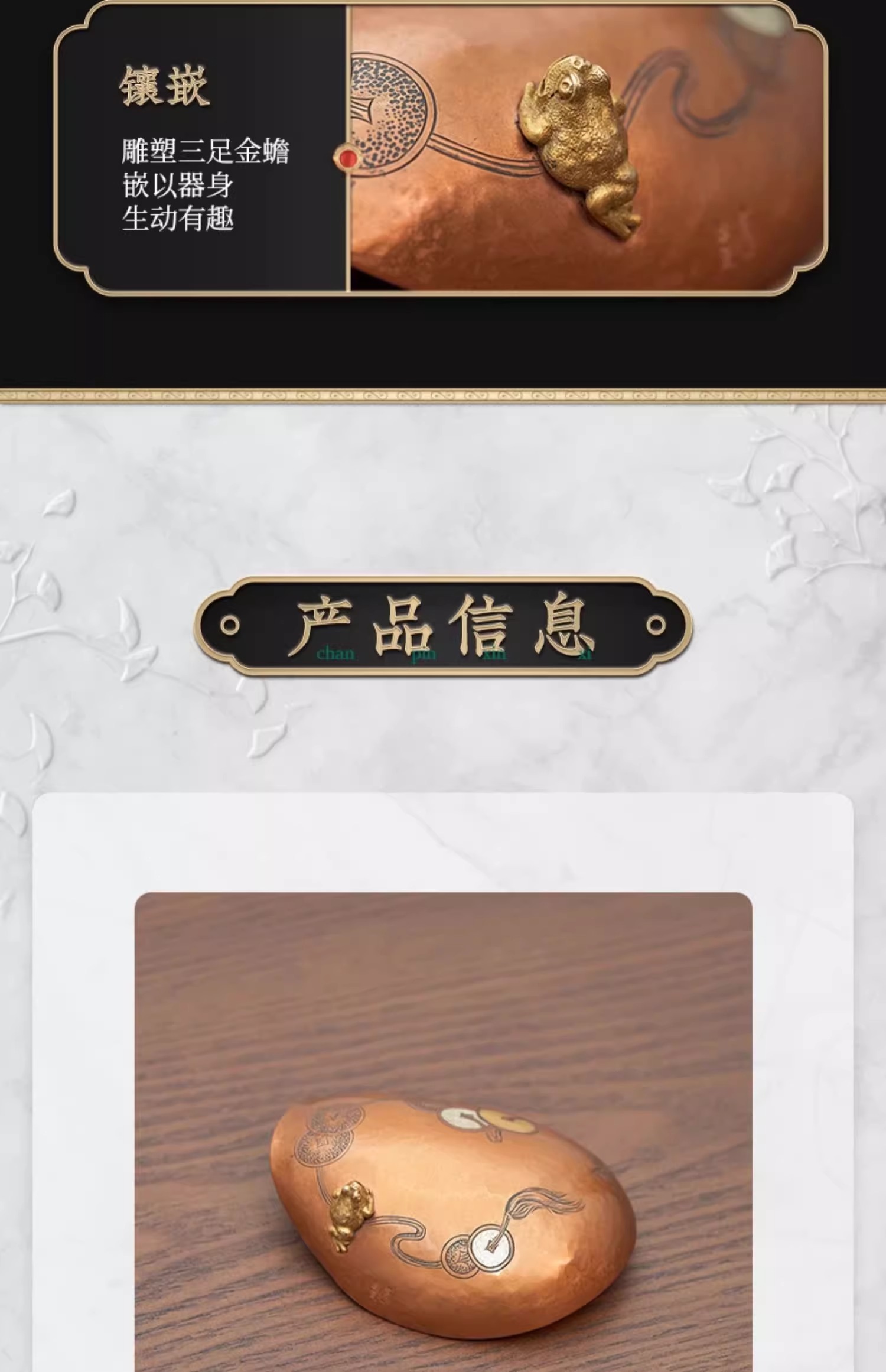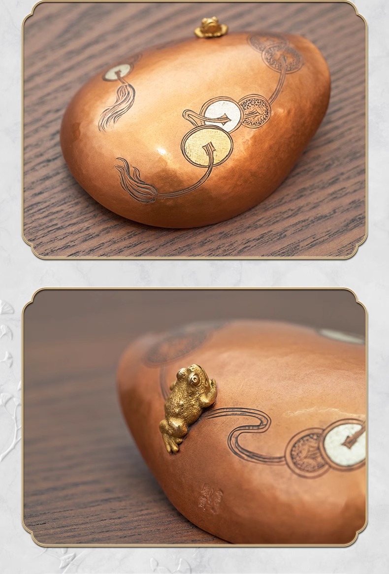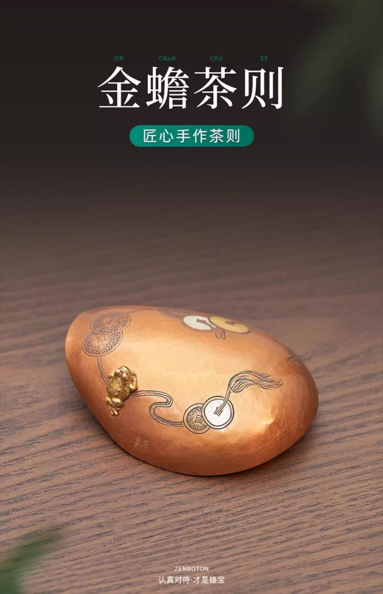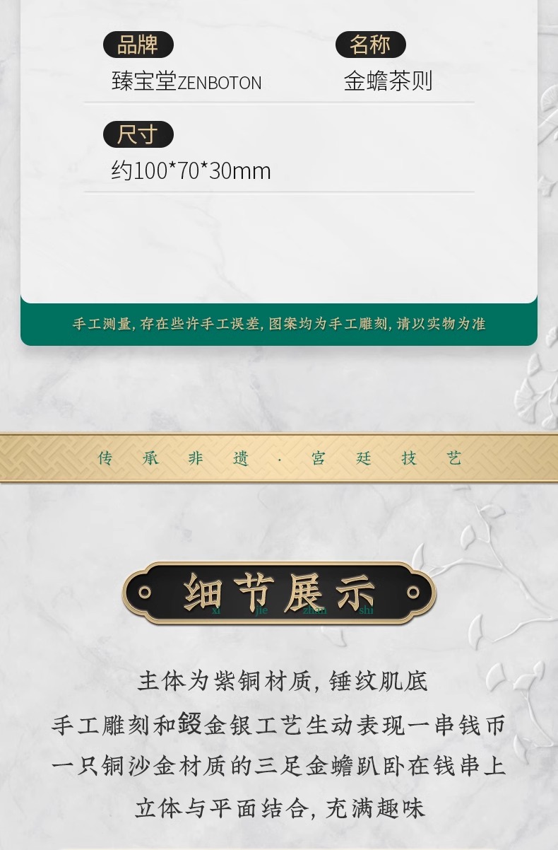 臻宝堂铜茶则纯手工雕刻赏茶荷金蟾醒茶器功夫茶具家用茶道铜配件金蟾茶则