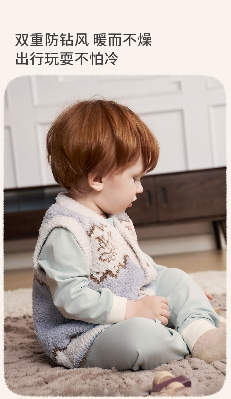 【宝宝服饰】嫚熙童装儿童马甲2025新款秋季半边绒保暖婴儿内搭小月龄宝宝背心