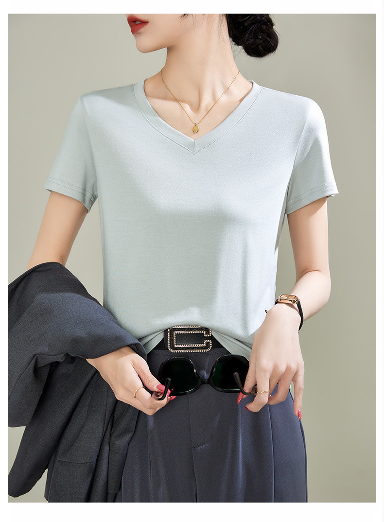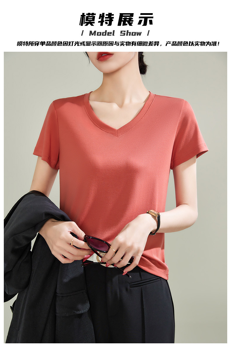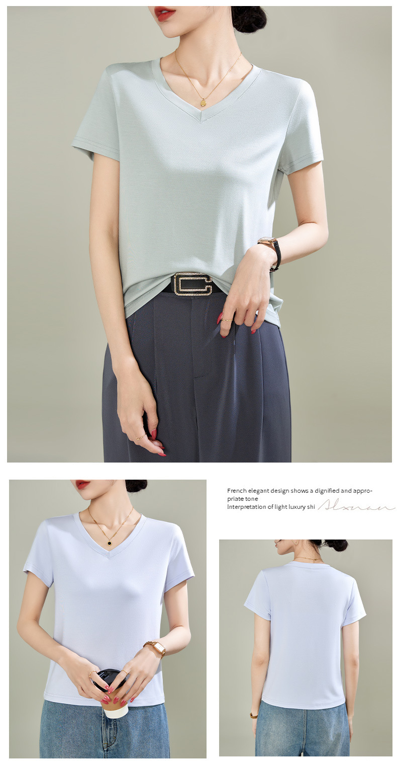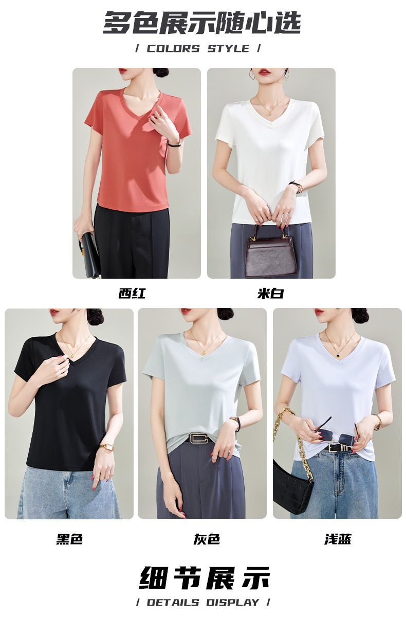 v领天丝兰精莫代尔云感短袖t恤女正肩2025夏新款高品质上衣女内搭体恤衫