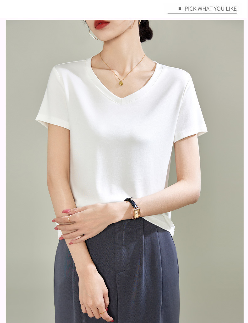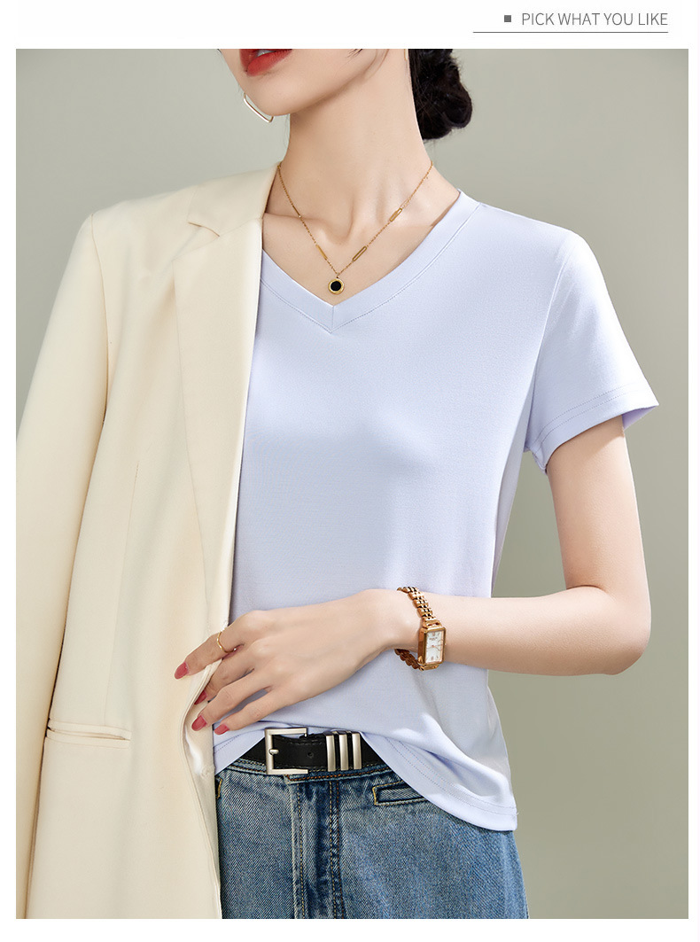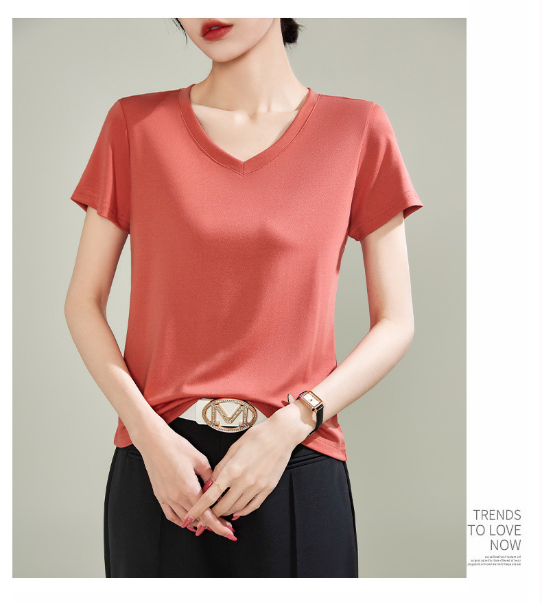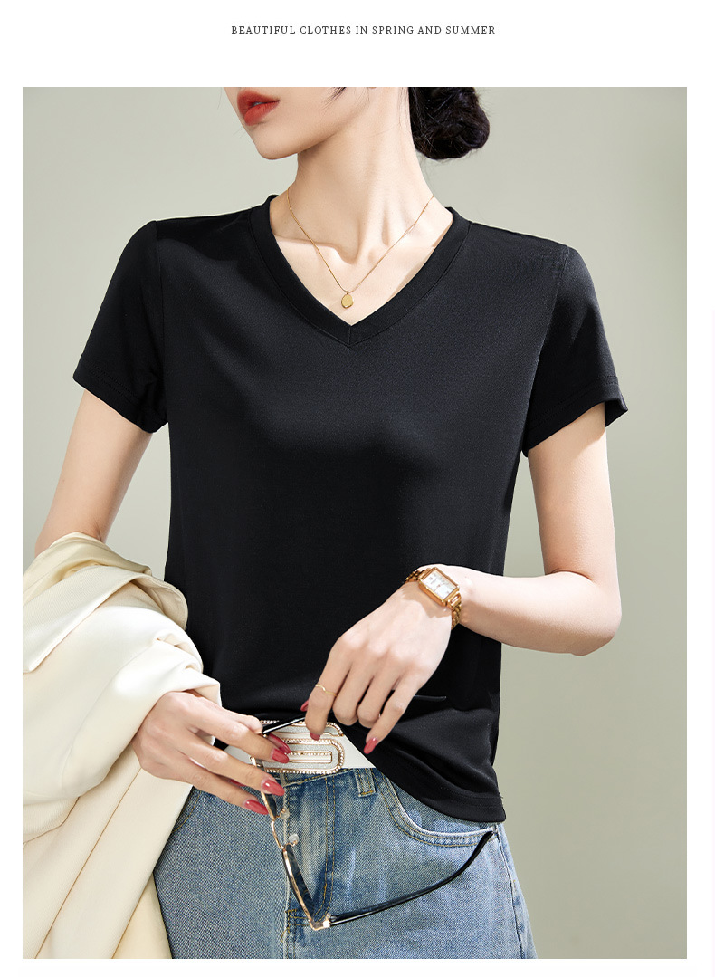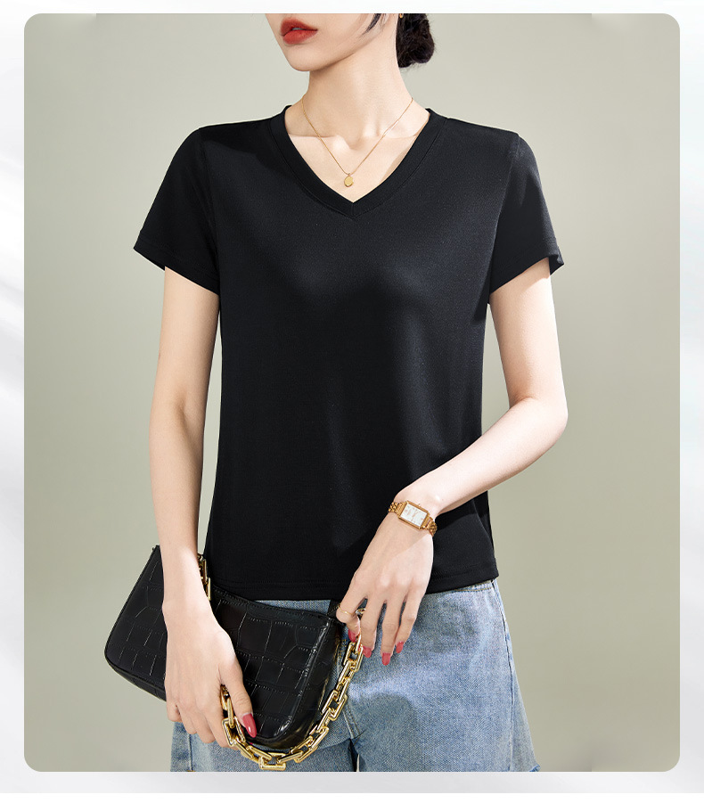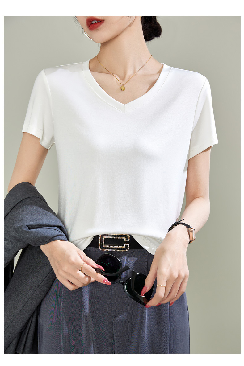 v领天丝兰精莫代尔云感短袖t恤女正肩2025夏新款高品质上衣女内搭体恤衫