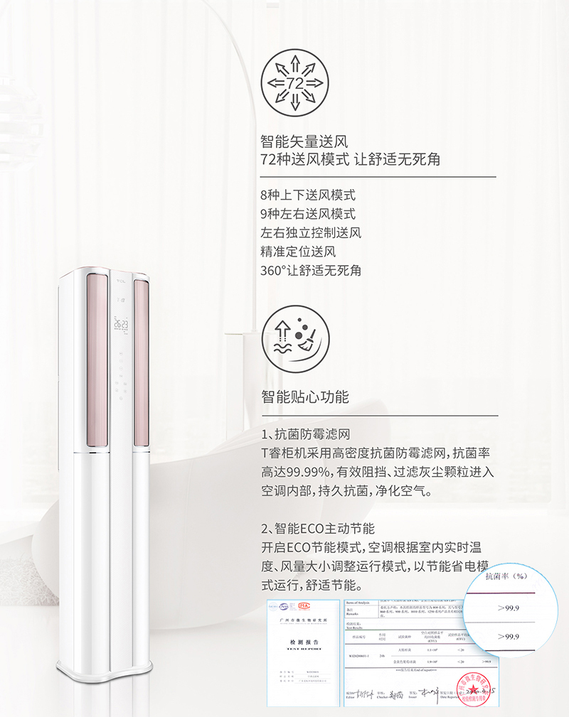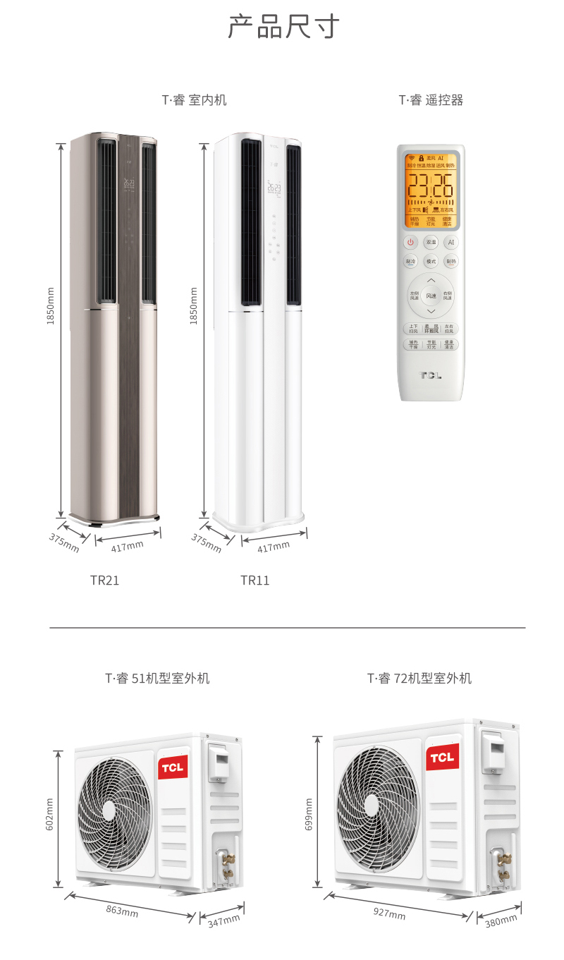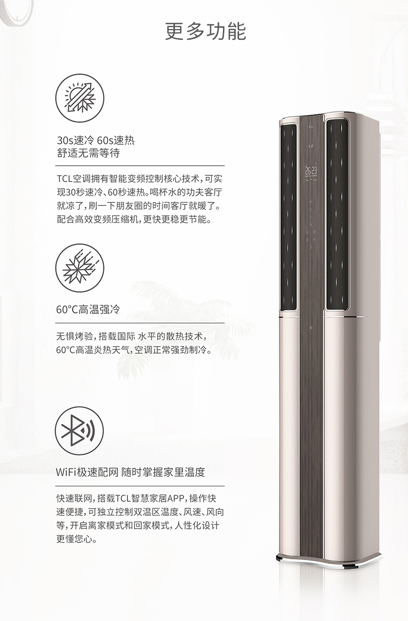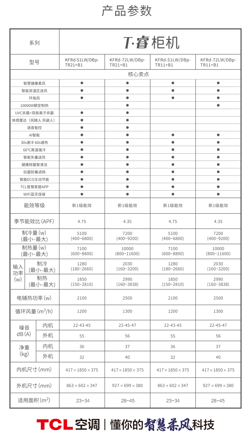 TCL大3匹 新一级能效变频冷暖 T睿 智能 母婴级柔风 双温区空调立柜机KFRd-72LW/DBp-TR21+B1