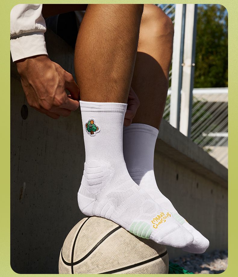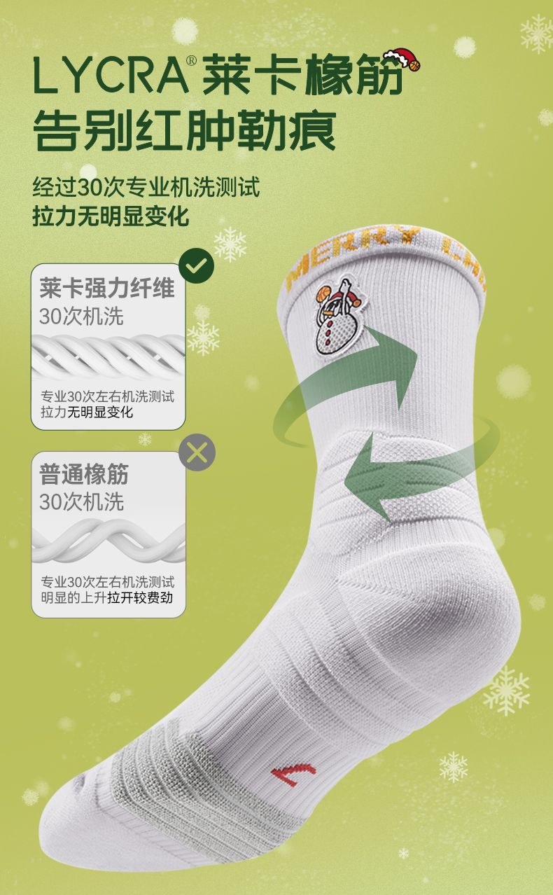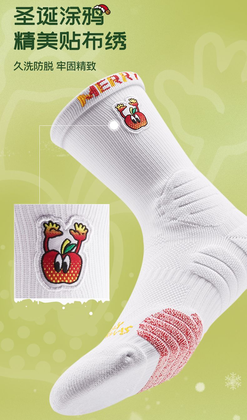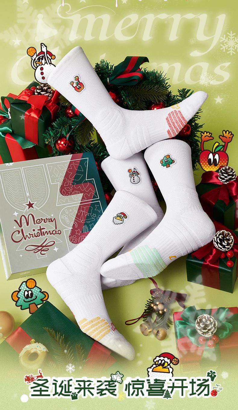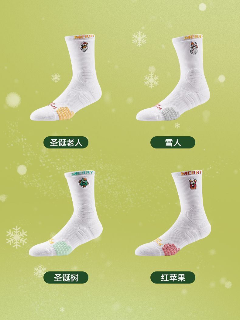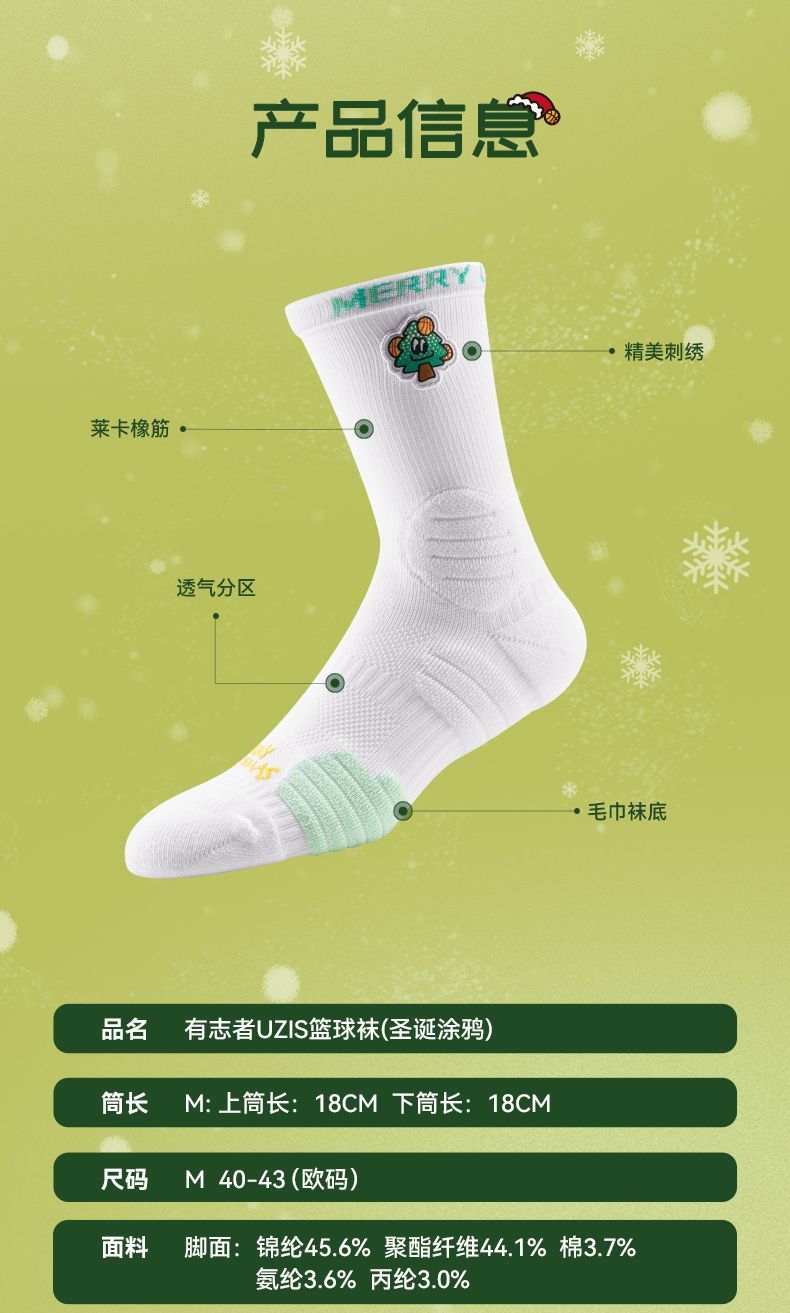 有志者UZIS运动新款圣诞篮球跑步训练防滑抗菌长筒篮球袜圣诞涂鸦
