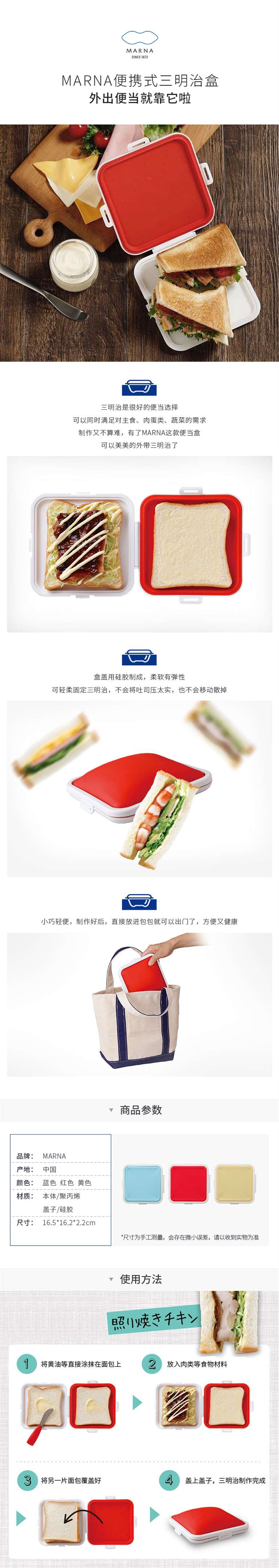 原装进口MARNA三明治便当盒便携式
