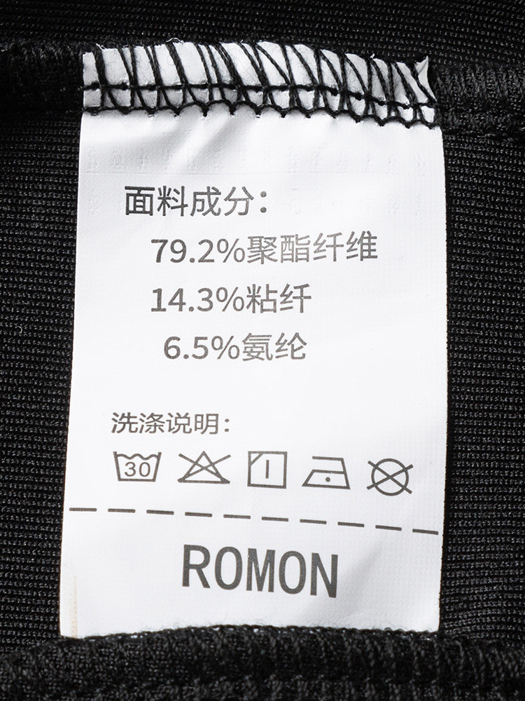 面料:79.2%聚酯纤维14.3%粘纤6.5%氨纶